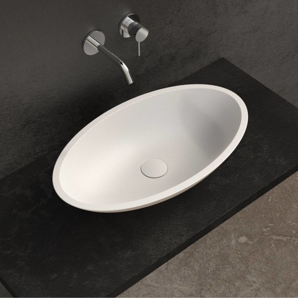 Deze opbouw waskom is geproduceerd in de kleur mat wit en heeft een ovale vorm. De hoogte van deze waskom bedraagt 9 cm, de breedte 60 cm en de diepte 35 cm. Het matte, fluweelachtige oppervlak van de wasbak voelt prettig aan en is makkelijk schoon te maken en te onderhouden.