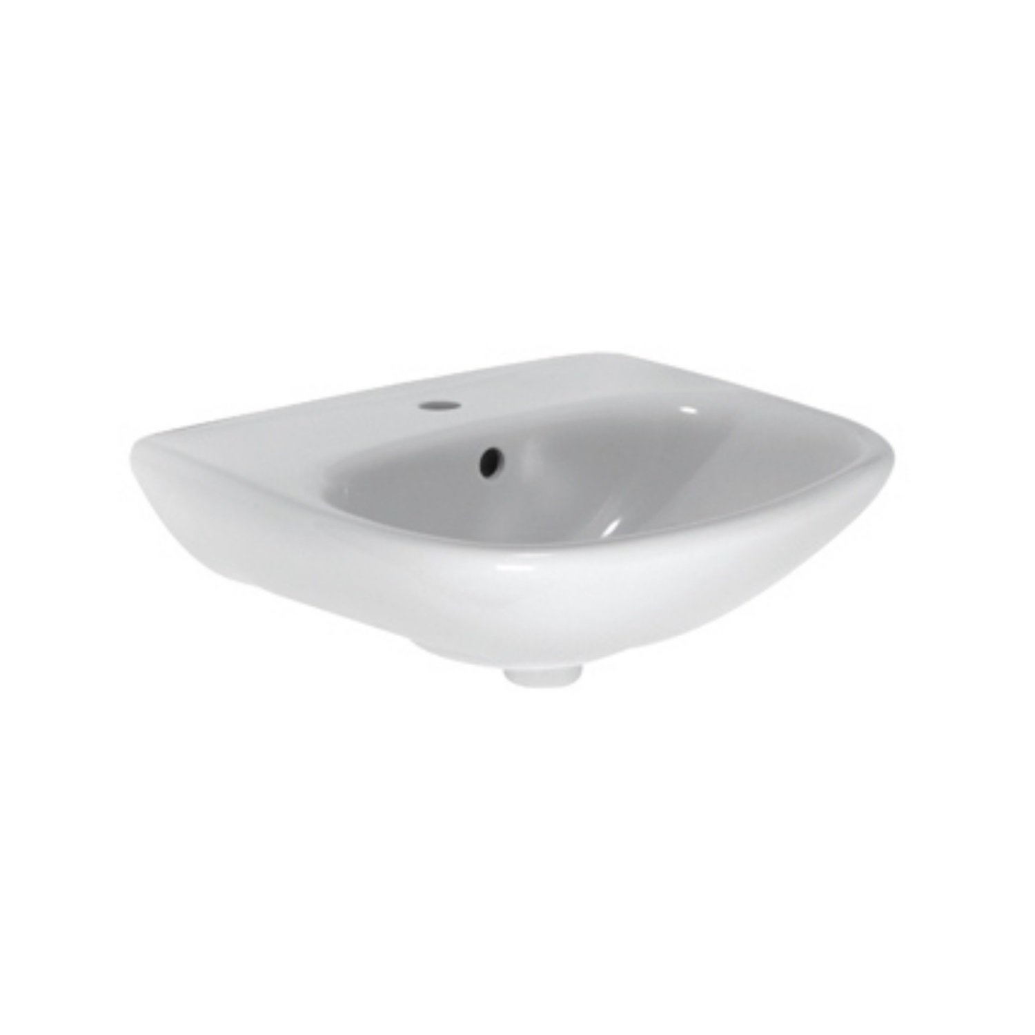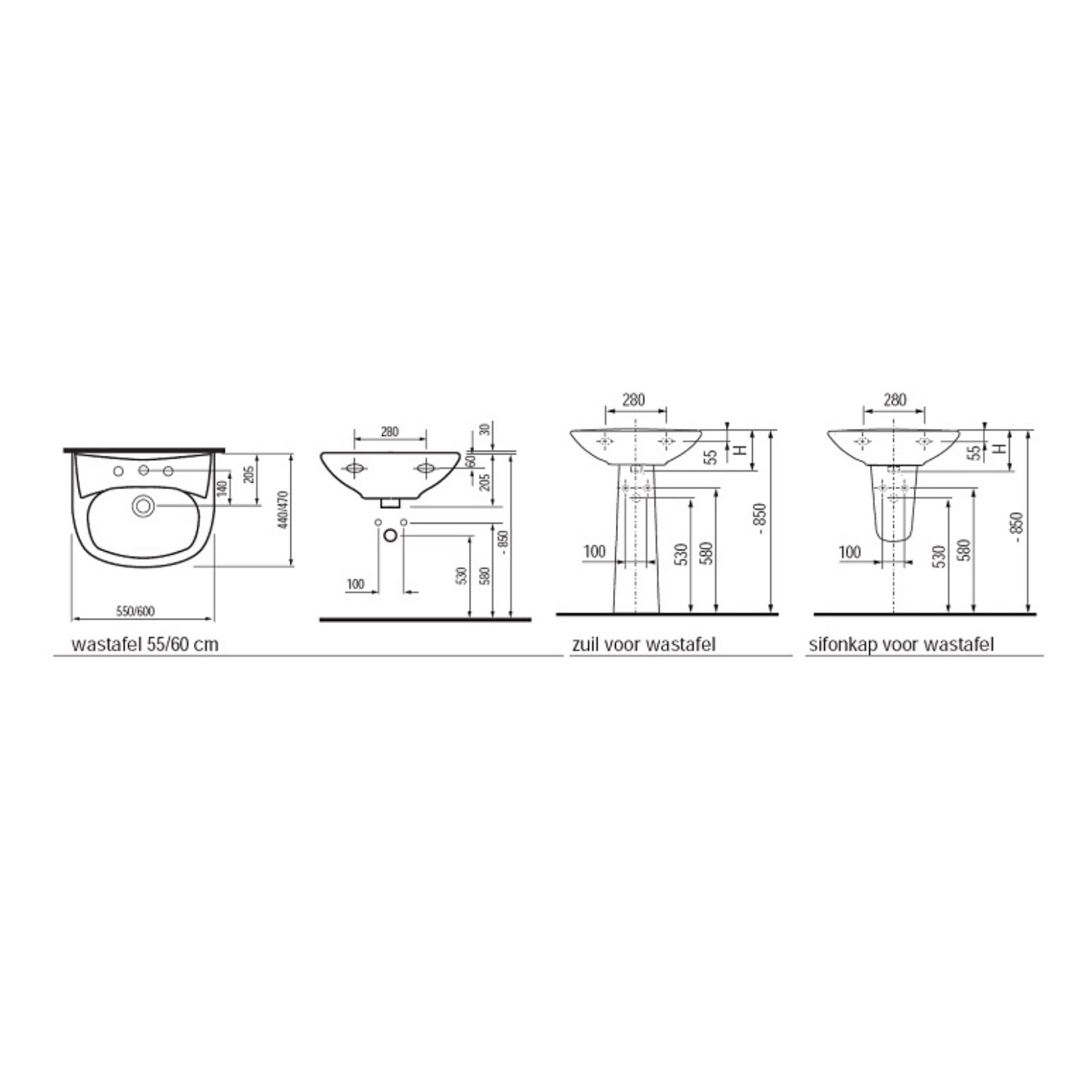 De wastafel is halfrond met een kraangat in het midden van de wastafel. Ook heeft deze wasbak een overloopgat in het midden. De diepte van deze wasbak is 44 cm, de breedte is 55 cm, en de hoogte is 20 cm. Bij deze Wastafel zit geen kraan of sifon, ook heeft deze wasbak geen antikalkbehandeling gehad. De Sifonkap kunt u er apart bij bestellen.