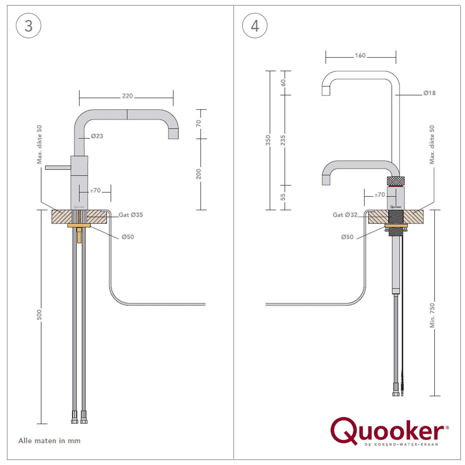 De Nordic Square Twintaps is een set kranen bestaande uit een kokendwaterkraan en een mengkraan in hetzelfde design met een ronde uitloop. De kokendwaterkraan bevat een dubbelwandige uitloop, zodat deze niet te heet wordt om vast te pakken. U drukt de ring twee keer naar beneden met een kwartslag draai. U ziet de rode lichtring oplichten. Hieraan kunt u zien dat de kokendwater tap geactiveerd is.