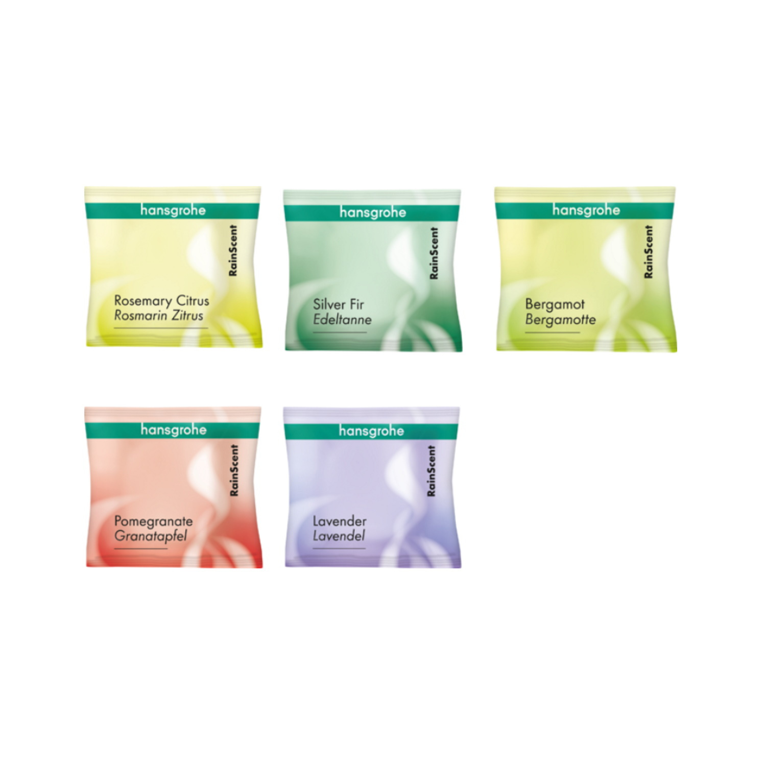 Een unieke Wellness ervaring in uw badkamer creëeren? Dat kan met de tabletten van Hansgrohe RainScent. Deze tabletten plaatst u in uw doucheruimte tijden het douchen. Op die manier verrijkt u uw douchebeurt met aromtische geuren die u helpen met ontspannen of u juist klaarmaken voor de dag.