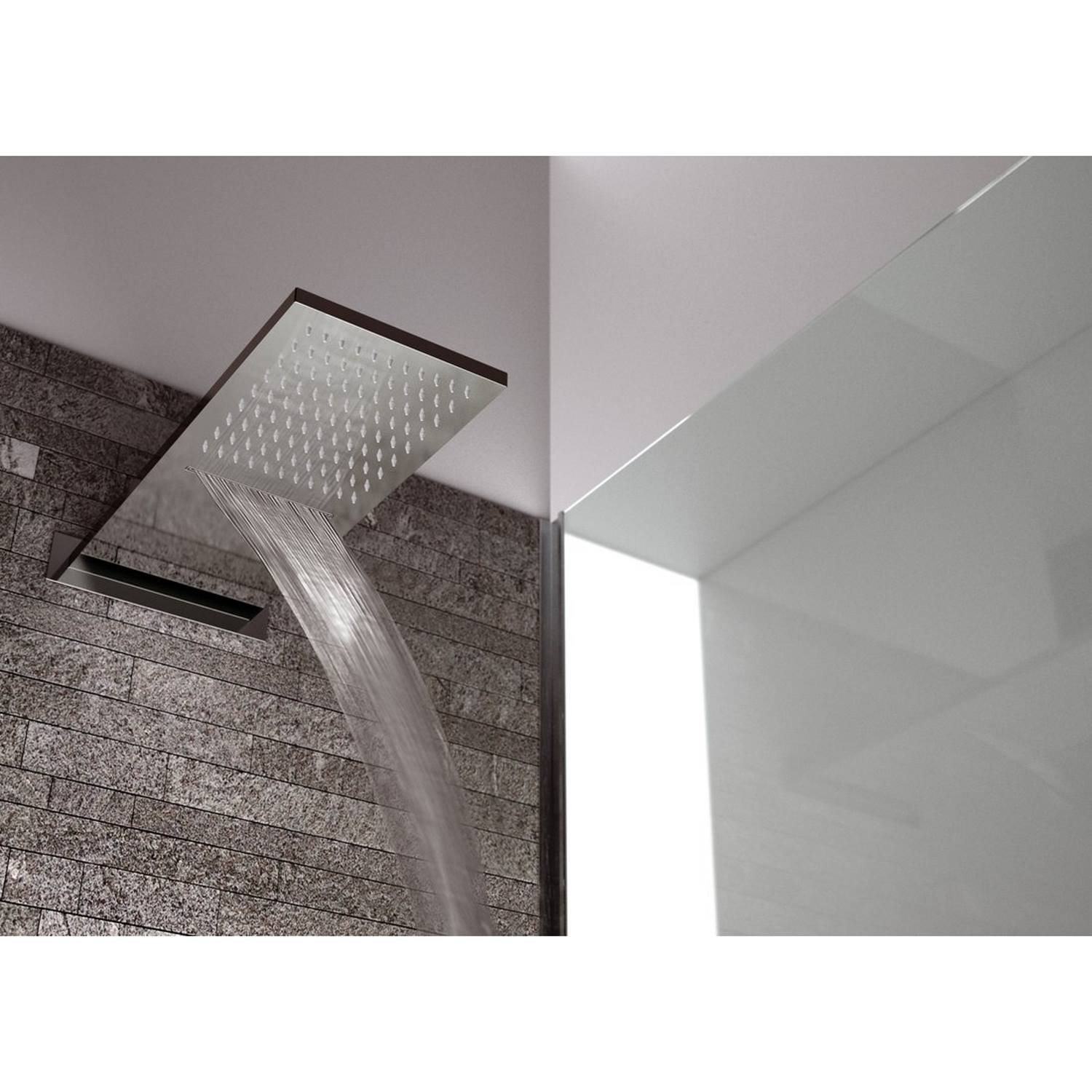 Deze luxe geborstelde RVS hoofddouche is van het merk Sapho. Een rechthoekige hoofddouche die opvalt door zijn grote oppervlakte en een strak design. De hoofddouche is voorzien van een anti-kalk systeem. Dit model maak uw badkamer compleet en geeft een heerlijk luxe gevoel! Deze douchekop heeft een regenstand en een watervalstand.