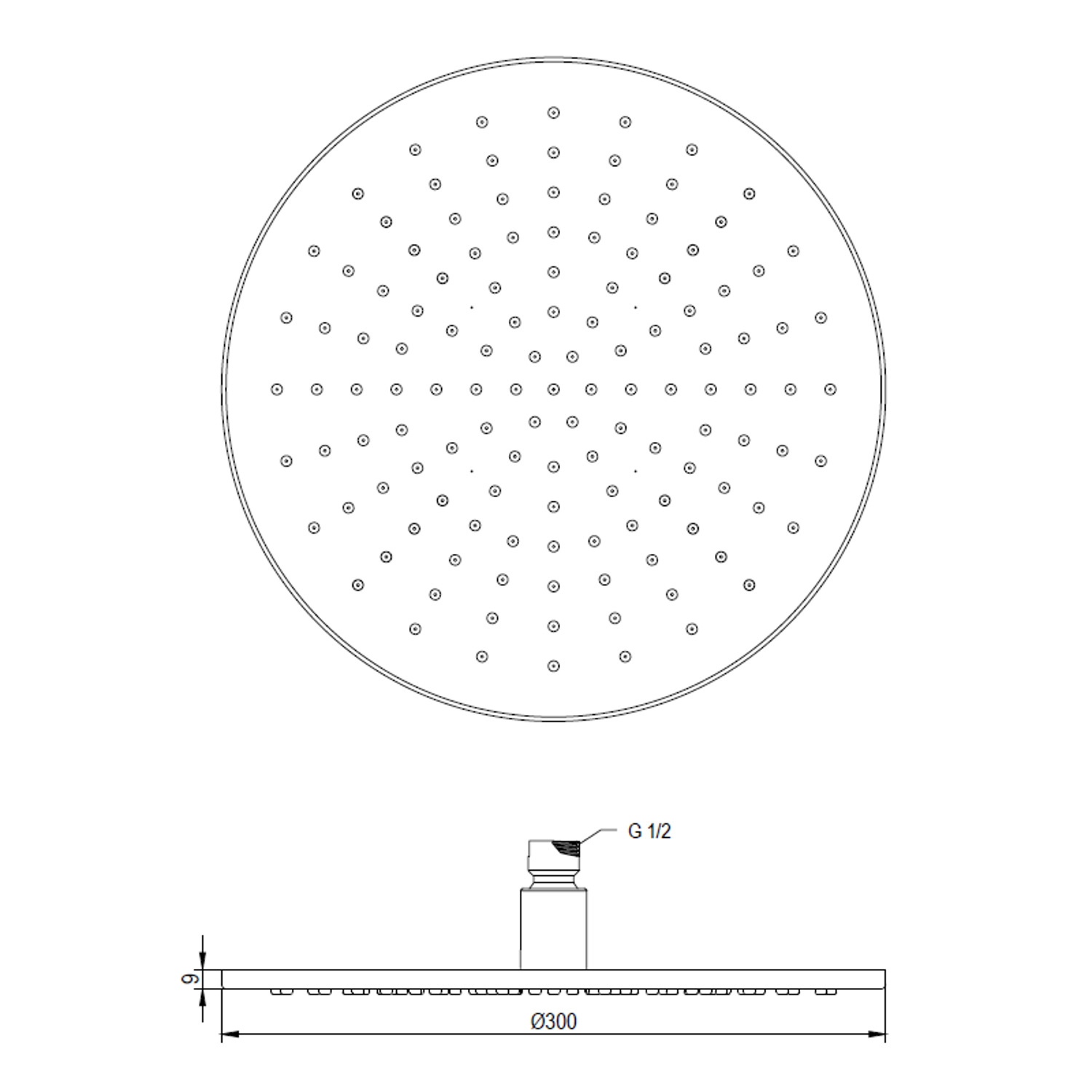 De douchekop is 30 cm en heeft 1 stand. Hij is van RVS is de kleur geborsteld goud.
