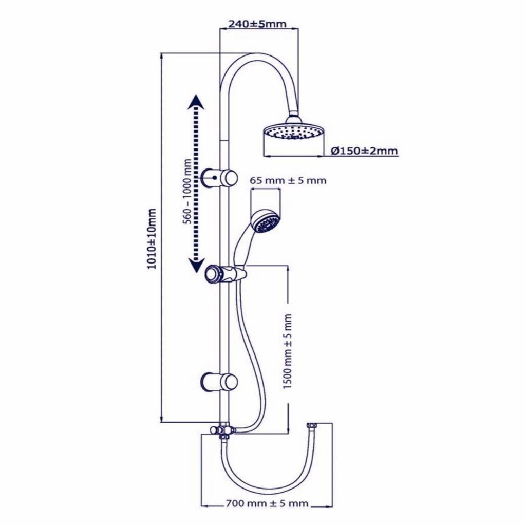 De set is grotendeels gemaakt van metaal en deels van kunststof. De hoofddouche heeft een diameter van 15 cm en beschikt over antikalk sproeigaatjes. Ook de handdouche is uitgerust met deze sproeigaatjes en heeft een diameter van 8 cm. De hoofddouche is een zogeheten 'stortdouche' waardoor het uitstromende water een absoluut wellness-gevoel zal geven! Deze set wordt geleverd zonder thermostatische kraan: deze kunt u onderaan de webpagina aan de bestelling toevoegen.