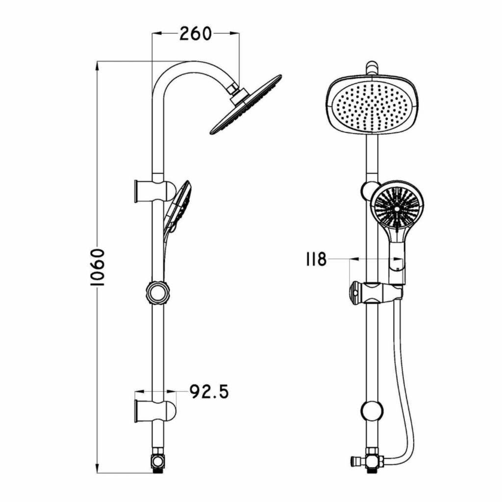 De set is grotendeels gemaakt van metaal en deels van kunststof. De hoofddouche heeft een diameter van 20 cm en beschikt over antikalk sproeigaatjes. Ook de handdouche is uitgerust met deze sproeigaatjes en heeft een diameter van 12 cm. De hoofddouche is een zogeheten 'stortdouche' waardoor het uitstromende water een absoluut wellness-gevoel zal geven! Deze set wordt geleverd zonder thermostatische kraan: deze kunt u onderaan de webpagina aan de bestelling toevoegen.