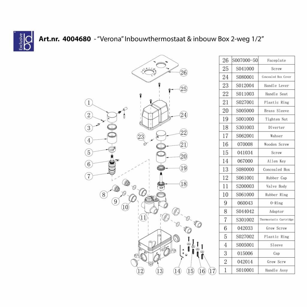 De afdekplaat van de kraan heeft een afmeting van 12x21cm. Daarnaast heeft de thermostaatkraan ingebouwde filters en keerkleppen een teruglopen te voorkomen. De kraan is een 2-weg omstel en is voorzien van geheel metalen ronde knoppen. De ene knop is voor het bedienen van het water welke richting het op moet: uit, naar hoofddouche of naar de metalen handdouche.