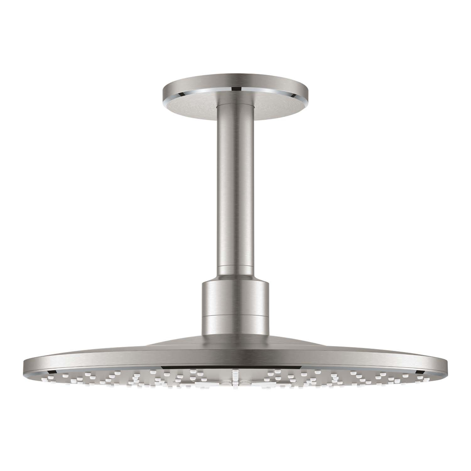 De hoofddouche heeft een diameter van 31 cm en de plafondarm is 18.5 cm lang. Maak uw badkamer compleet met andere producten van Grohe in de kleur Supersteel.