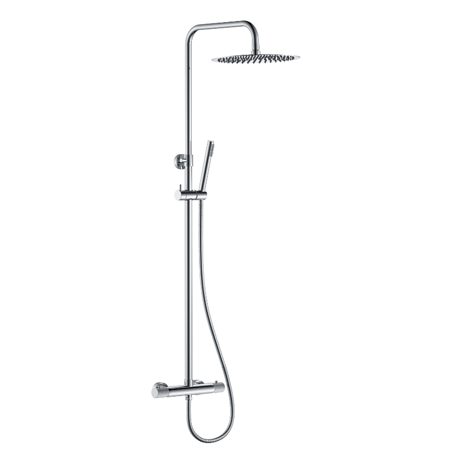 Deze Opbouw Regendoucheset is van het merk AQS en komt uit de serie Ribbel. De fraaie regendoucheset is van messing en de kleur is chroom. Hij is in hoogte verstelbaar en de set bestaat uit een regendouche en een handdouche. De afmeting van de hoofddouche is 25 cm. De fabrieksgarantie voor de set bedraagt 2 jaar.