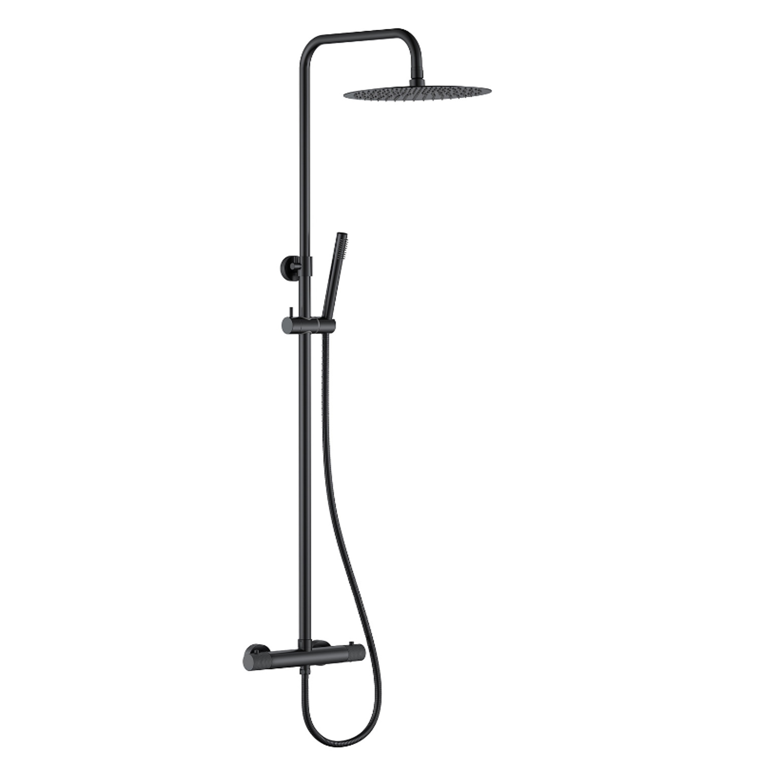 Deze Opbouw Regendoucheset is van het merk Wiesbaden en komt uit de serie Ridged. De fraaie regendoucheset is van messing en de kleur is mat zwart. Hij is in hoogte verstelbaar en de set bestaat uit een regendouche en een handdouche. De afmeting van de hoofddouche is 25 cm. De fabrieksgarantie voor de set bedraagt 2 jaar.