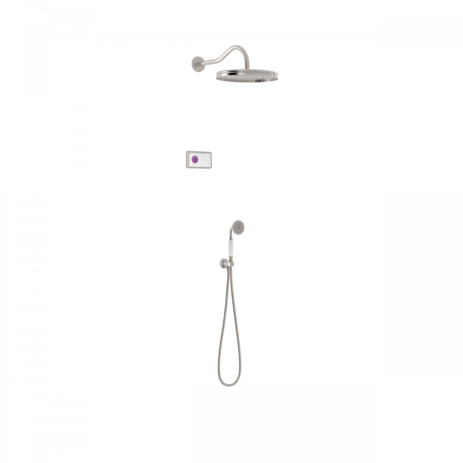 Deze regendoucheset van Tres komt uit de Clasic serie. Deze serie bestaat uit allemaal artikelen met een klassieke uitstraling. Dit is inbouwdouche is gemaakt van messing in een rvs kleur. De hoofddouche heeft een diameter 31 cm en de antikalk handdouche heeft een diameter van 7.8 cm. De inbouw thermostatische kraan is elektronisch en voorzien van vochtafdichtingen van Schlüter in een witte kleur. Door het keramische binnenwerk behoud deze kraan jarenlang zijn kwaliteit. De lengte van de geribbelde doucheslang is 170 cm. De hoofddouche heeft een uitloop uit de muur.