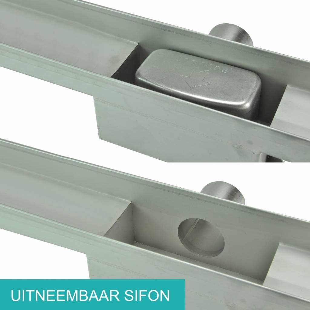 De basic douchegoot is volledig gemaakt van RVS. RVS glanst en is een uitstekende keuze voor een douchedrain door zijn vaste harde vorm. Het roest niet en gaat daardoor lang mee. Het voordeel van de douchegoot is dat u het sifon eruit kan halen om schoon te maken. Met een extra haarfilter kunt u de goot nog schoner houden en u voorkomt hiermee verstopping. De sifon is slechts 6.7cm diep (geïntegreerd).