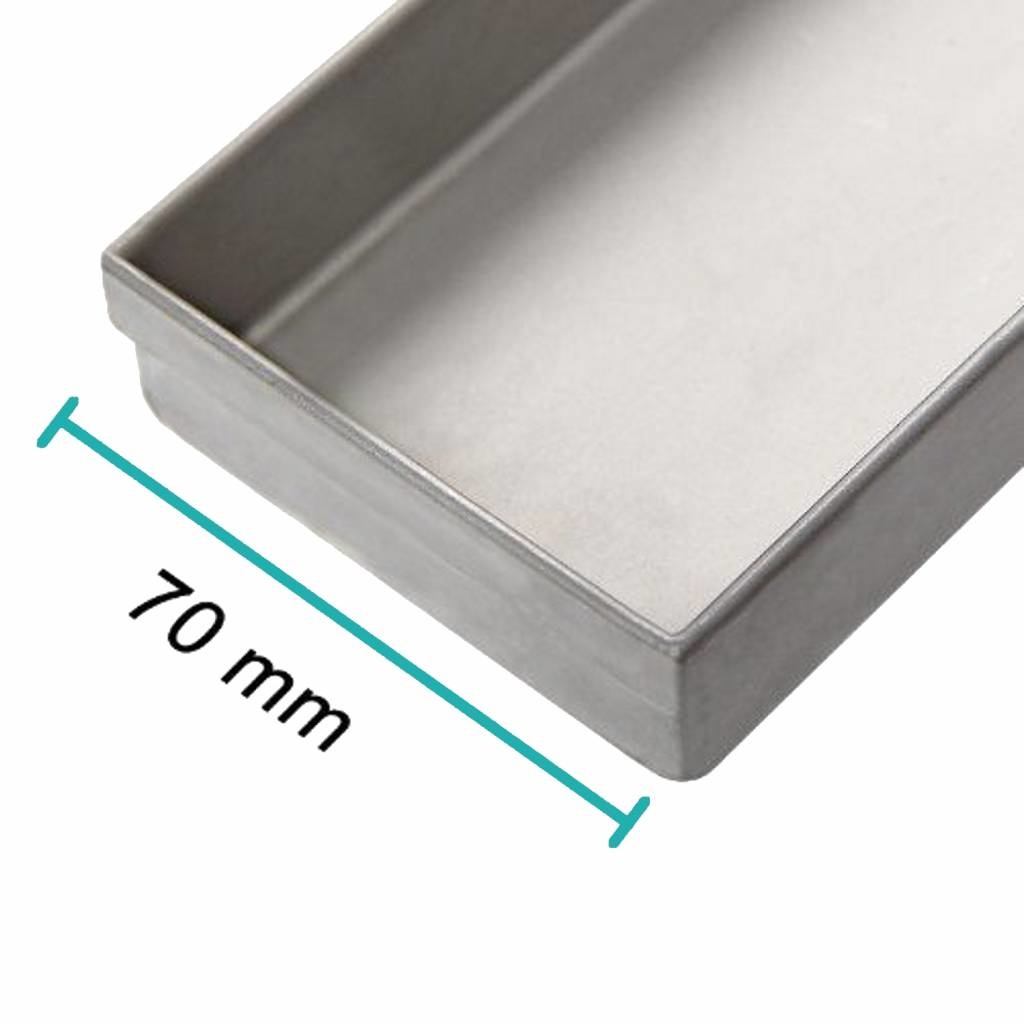 De basic goot is 50cm lang en slechts 7cm breed. Het RVS rooster met sleuven wordt standaard meegeleverd, maar er zijn ook meerdere designs mogelijk.