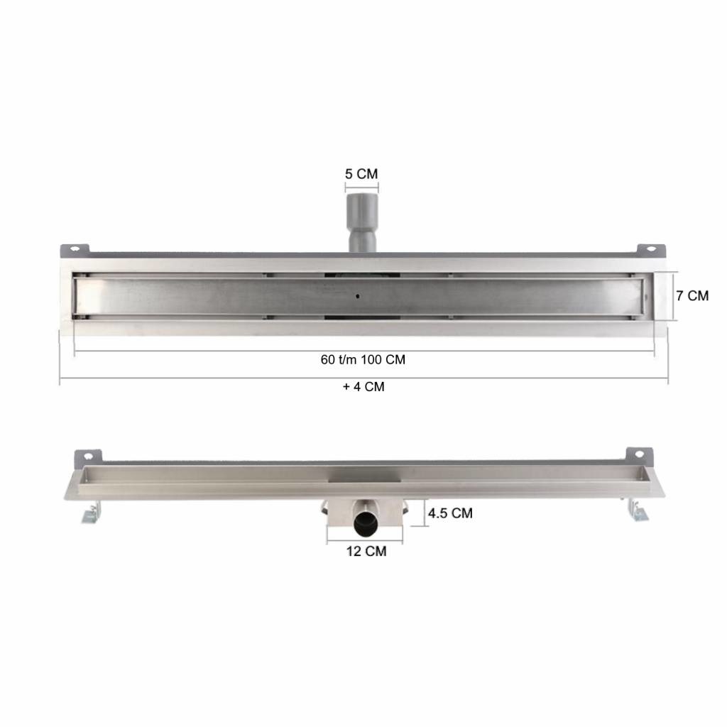 De moderne glazen douchegoot van 7cm breed is in verschillende maten verkrijgbaar om voor elke badkamer de juiste douchegoot te kunnen realiseren. De goot met muurflens is volledig van RVS met als voordeel dat het glanst en houdt zijn vaste vorm. Het roest niet en gaat lang mee.