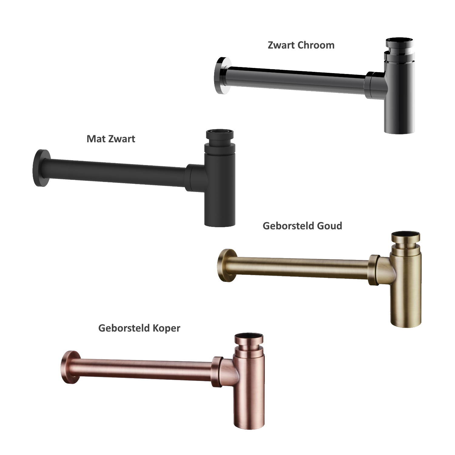 U heeft in deze set keuze uit maar liefst vier kleuren wastafelkranen, clickwastes en sifons. In de wastafel zit geen overloop verwerkt. Er wordt een bijpassende afvoerplug bij geleverd in dezelfde kleur als het keramiek. U kunt in deze set er ook voor kiezen om tegen een meerprijs een clickwaste toe te voegen in dezelfde kleur als uw gekozen kraan en sifon.