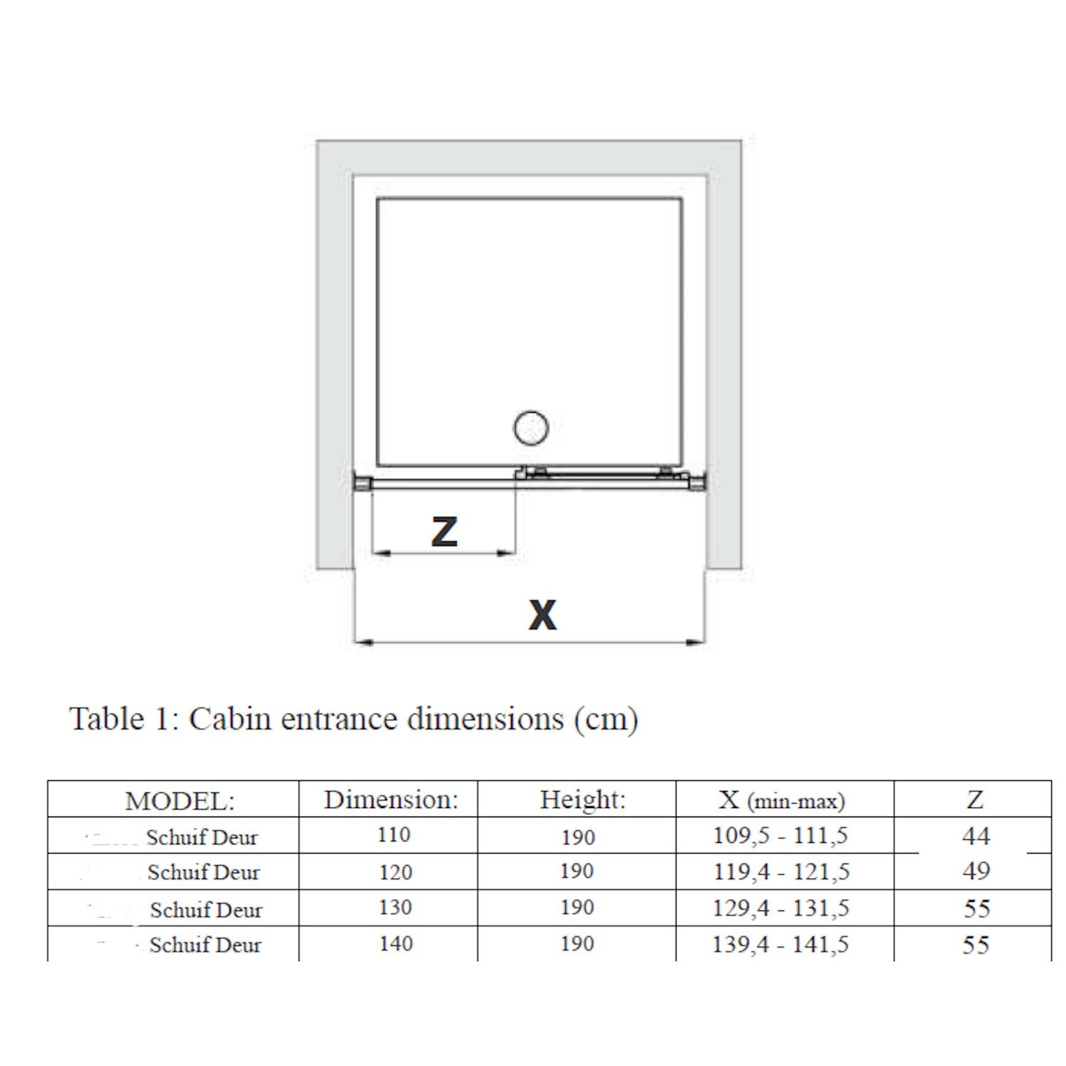 Moderne nisdeur van het merk Boss & Wessing uit de serie Arema. Deze schuifdeur kunt u gemakkelijk plaatsen in de douche en de schuifdeur is gemakkelijk te bedienen door opzij te schuiven. De schuifdeur heeft een zwart profiel. De deur is omkeerbaar plaatsbaar.