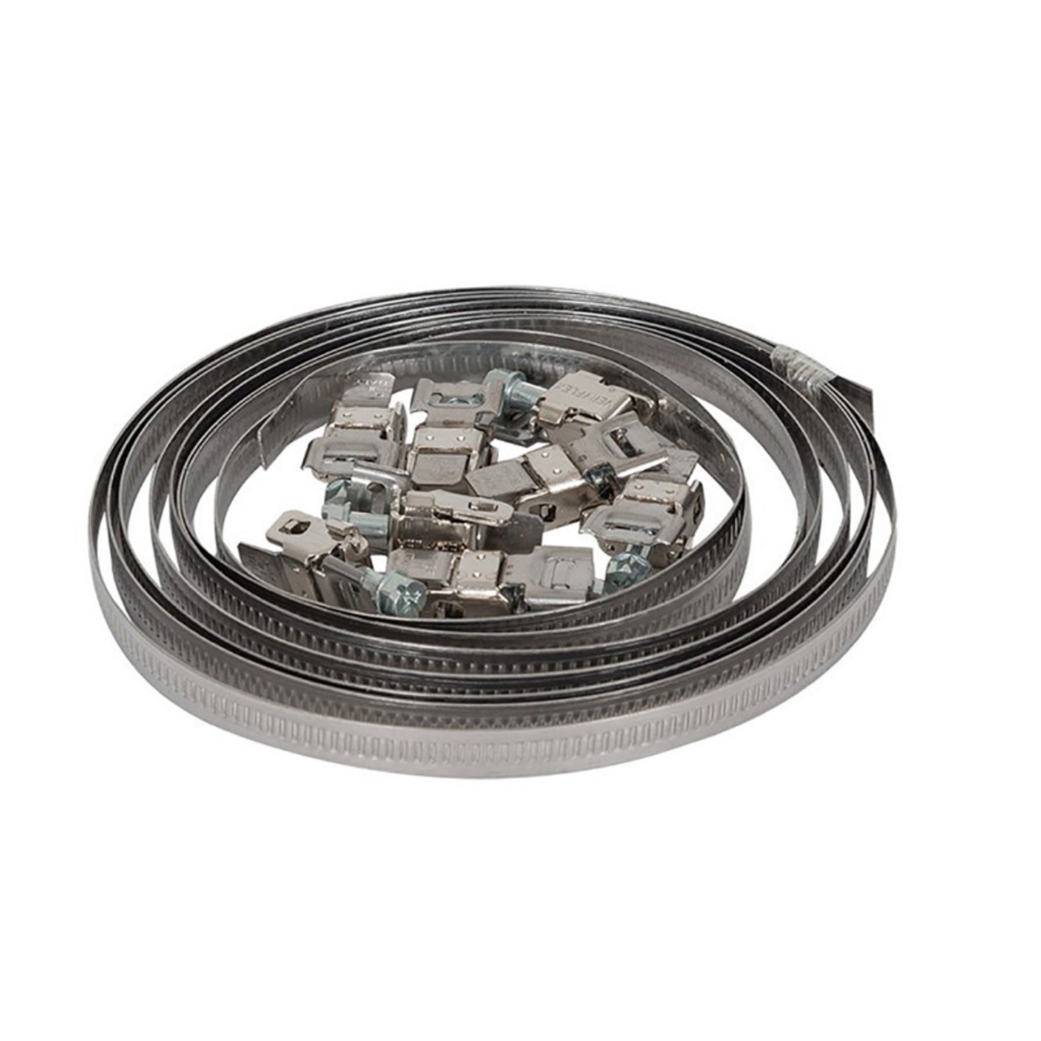 Deze slangklemset is van Wiesbaden en komt uit de Riko serie. Deze slangklemset bestaat uit een RVS multiband met een lengte van 3m en 8 losse klemmen en is o.a. geschikt voor de bevestiging van flexibele slangen. De klemmen hebben een breedte van 12 mm.