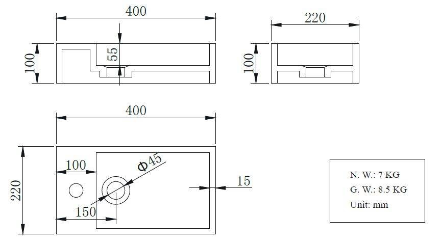 Solid Surface fontein rechts 400x220x100