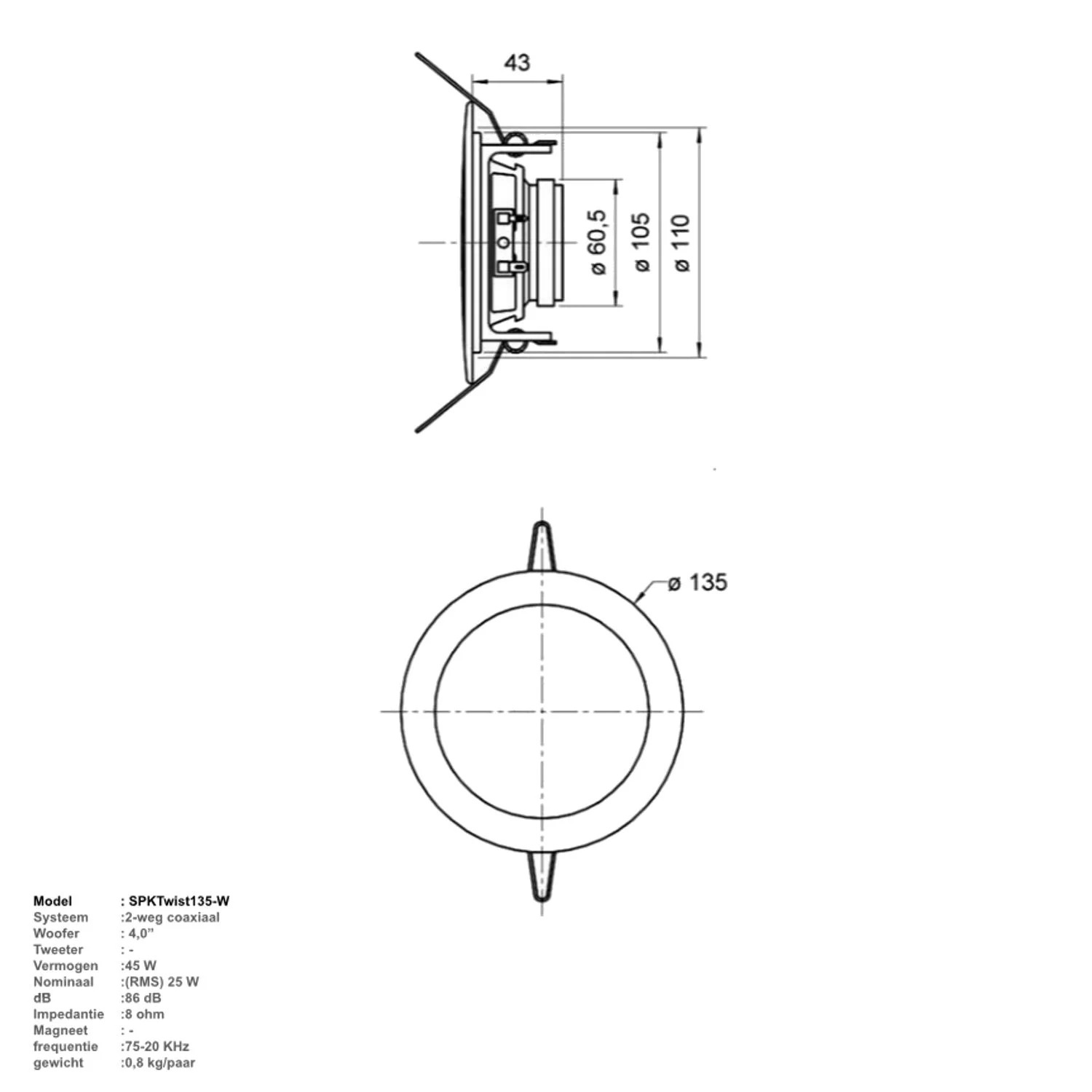 De 'Twist' is een kleine speaker met grootse prestaties. Dit model wordt daarom standaard meegeleverd bij alle complete muzieksystemen of bluetoothsystemen binnen het AquaSound assortiment. Deze waterbestendige speaker heeft een maximaal vermogen van 45 Watt. Dit model heeft slechts 43 mm inbouwdiepte nodig. Z’n buitendiameter is slechts 135 mm. Ook leverbaar in de kleuren wit en mat zwart.
