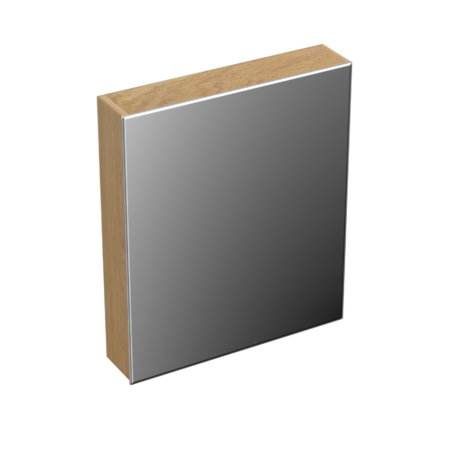 De kast is 59.5 cm breed, 68.8 cm hoog en 12,5 diep. Hij is voorzien van een grote deur met een tweezijdige spiegel. Aan de binnenkant van de kast zitten twee legplanken en een stopcontact en schakelaar. De prachtige massief eiken kast is voorzien van een Smoke afwerking wat de kast een zeer luxe uitstraling en warme uitstraling geeft. Combineer deze spiegelkast met een badmeubel in dezelfde kleur voor een mooie eenheid.