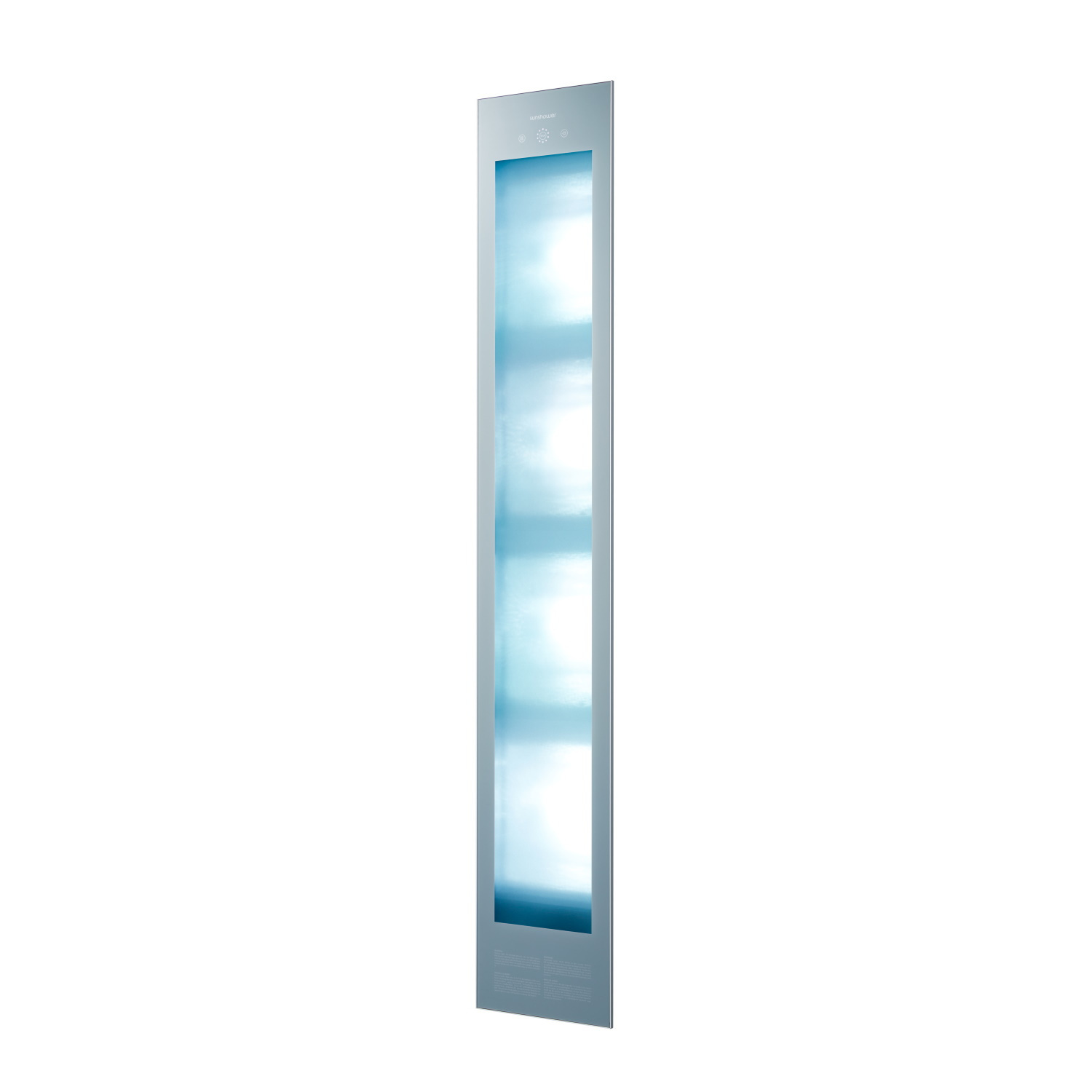 Design: De Sunshower Deluxe Organic grey is een full body inbouwapparaat met zowel een UV- als infraroodfunctie. De Sunshower Deluxe Organic Grey heeft vijf kortegolf infraroodlampen van elk 500W en vier UV-lampen. Het apparaat is afgewerkt met een gezandstraalde glasplaat met een wit kader en heeft een smalle opstaande aluminium rand.