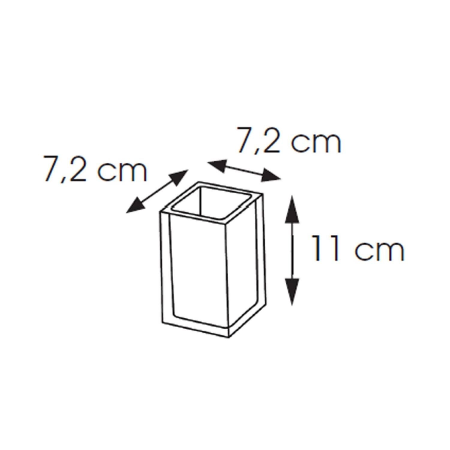 De tandenborstelhouder heeft een hoogte van 11 cm, een breedte van 7.2 cm en een diepte van 7.2 cm.