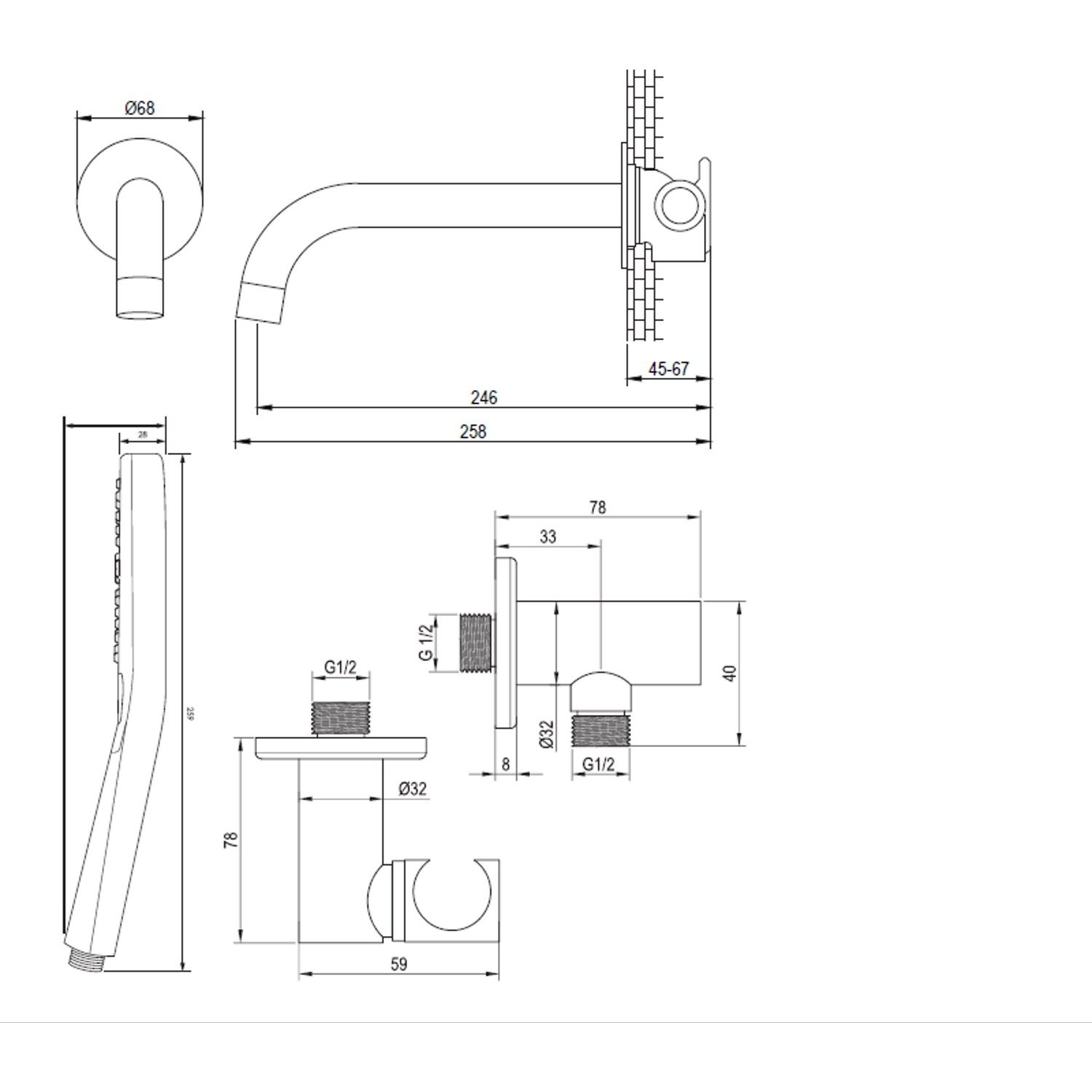 Dit artikel bestaat uit een thermostatische inbouw badkraan met drukknoppen, uitloop, 3-standen handdouche, doucheslang van 150 cm en een wandaansluitbocht.