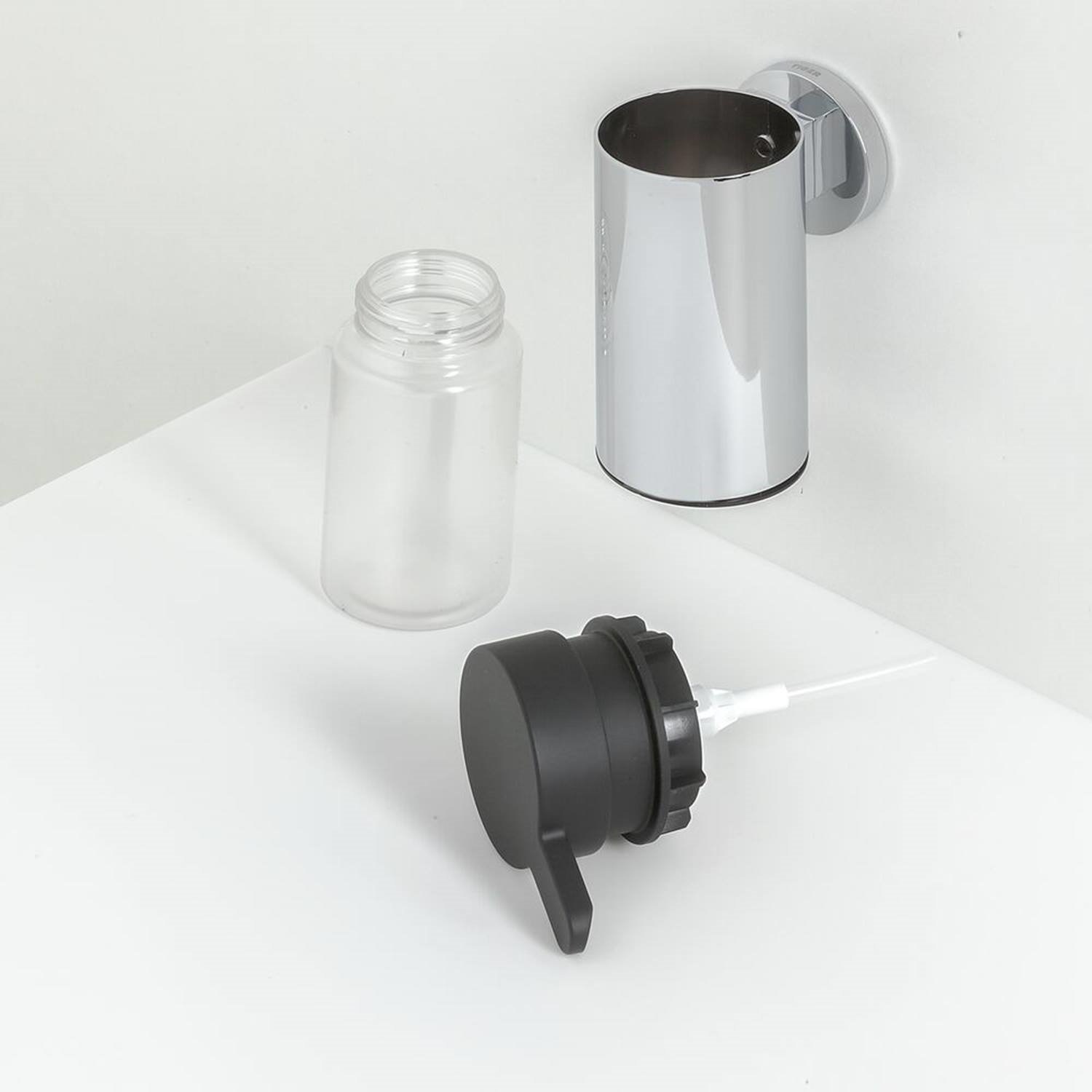 Het wandmodel is tevens beschikbaar in een kleinere maat. Het kunststof reservoir heeft een inhoud van 135 ml, is eenvoudig uit de houder te halen om opnieuw te vullen. De bevestigingsmaterialen zijn inbegrepen en bestaat uit RVS schroeven en Fischer pluggen.