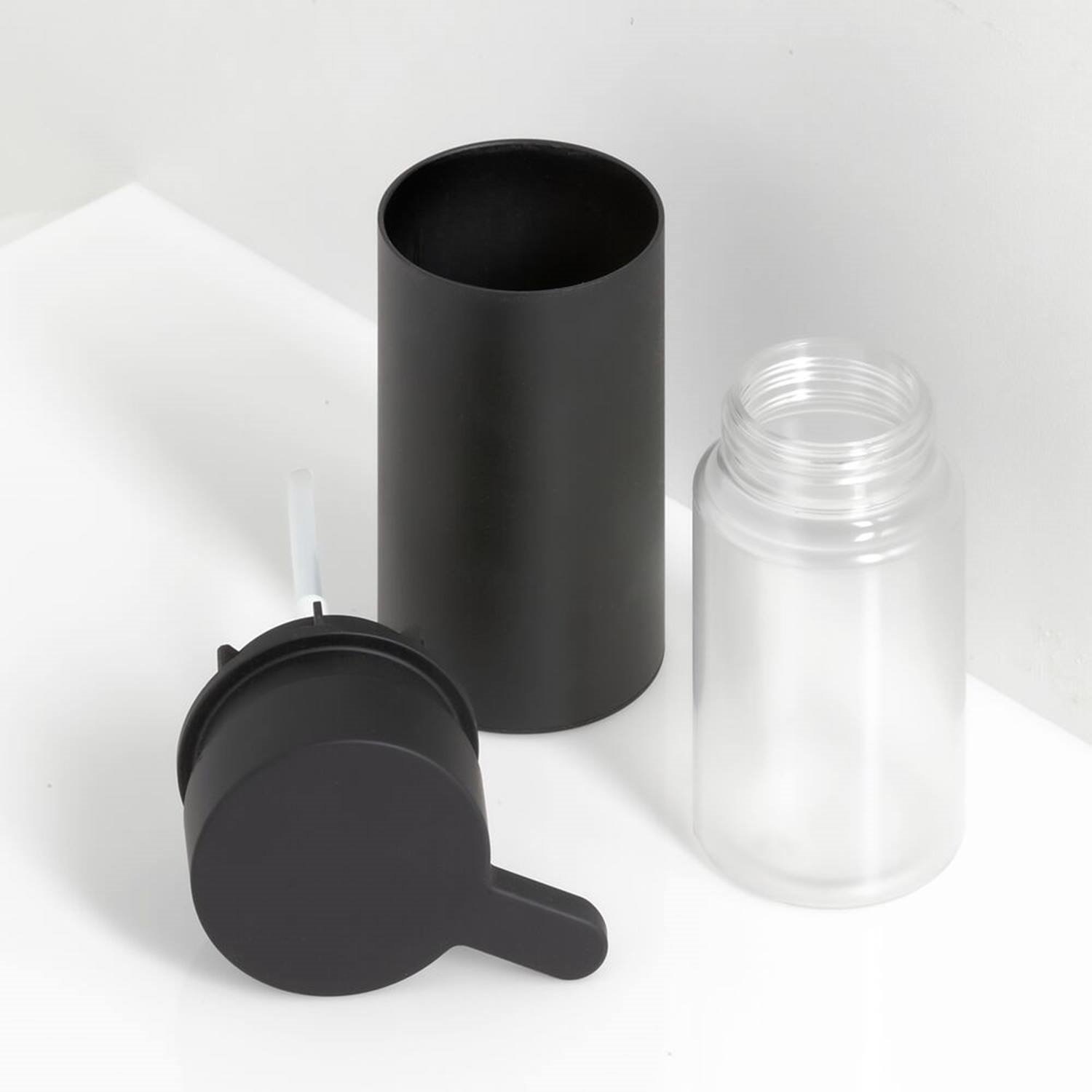 Deze vrijstaande zeepdispenser van de Noon serie van Tiger, wordt geleverd in de kleur mat zwart. Met zijn matte afwerking kunt u eenvoudig combineren met andere producten in uw badkamer in dezelfde stijl. De dispenser is voorzien van een uitneembaar, kunststof zeepreservoir met een inhoud van 135 ml, waardoor het product gemakkelijk is te vullen met vloeibare zeep.