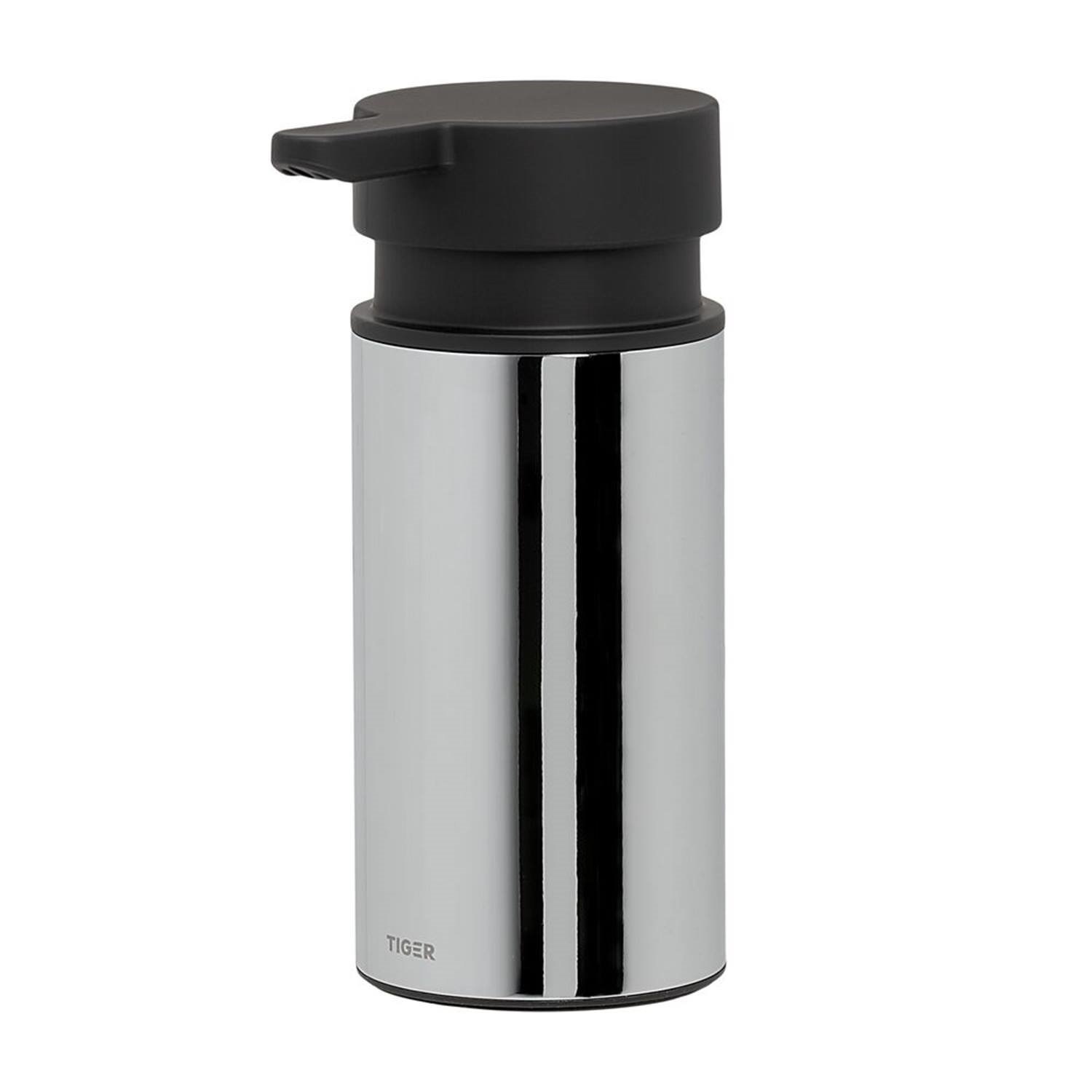 Deze vrijstaande zeepdispenser van de Noon serie van Tiger, wordt geleverd in de kleur chroom en is daardoor gemakkelijk te combineren met andere artikelen in badkamer of keuken. De dispenser is voorzien van een uitneembaar, kunststof zeepreservoir met een inhoud van 135 ml, waardoor het product gemakkelijk is te vullen met vloeibare zeep.