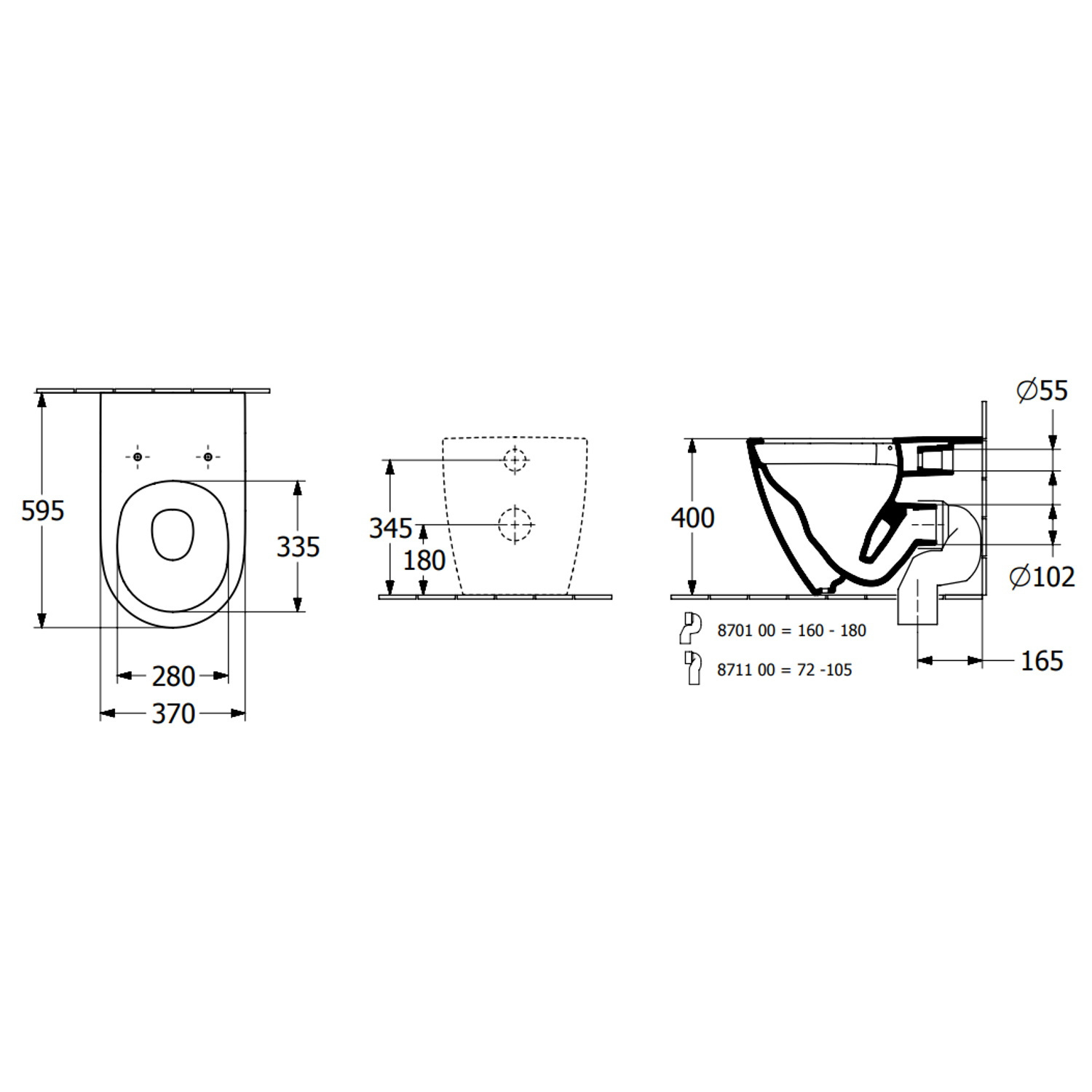 Staande ovale diepspoelcloset van 40 cm hoog, 37 cm breed en 60 cm diep. Dit mooie witte toilet is gemaakt van keramiek, heeft geen spoelrand en komt met een bevestigingsset. Het is gemaakt in de kleur Stone White mat wat fris oogt.
