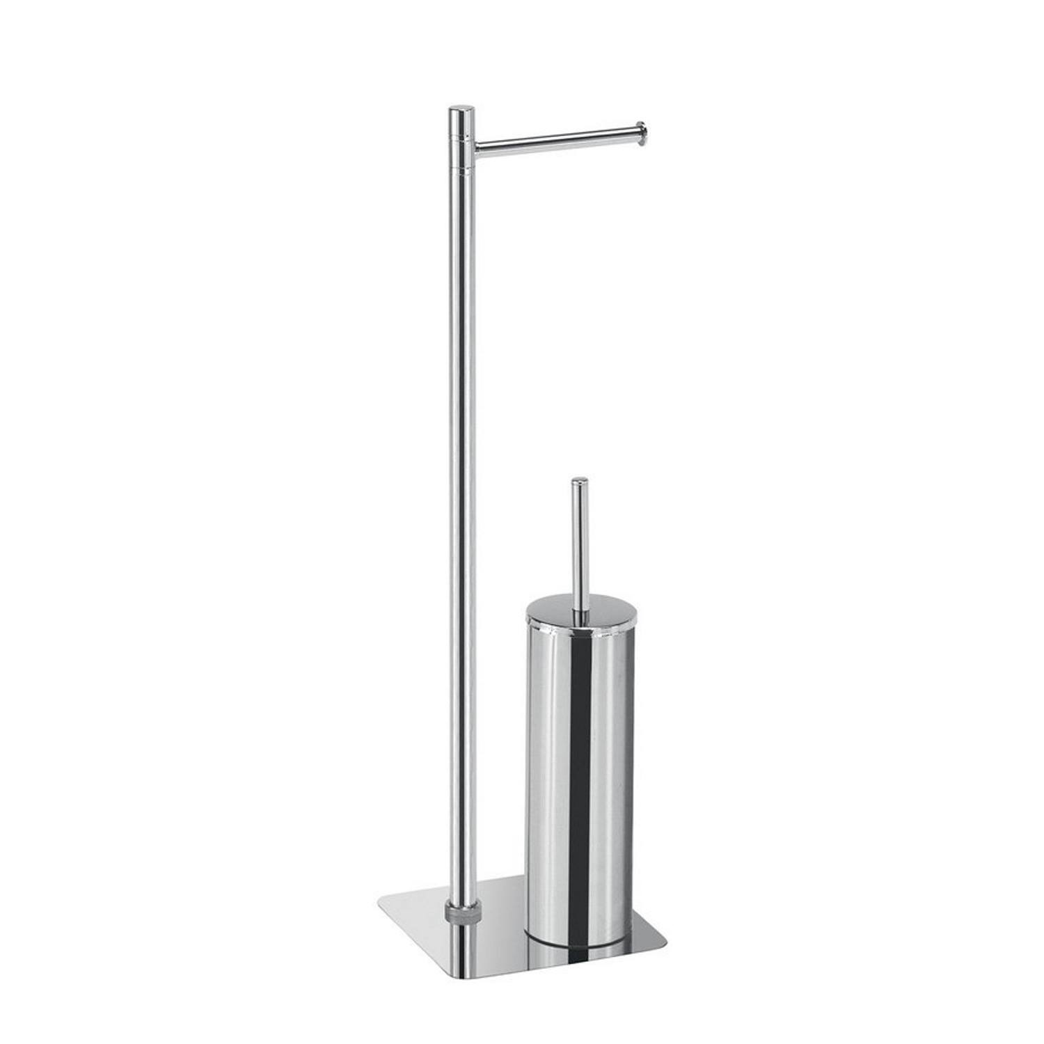 Deze toiletborstelhouder met toiletrolhouder is van het merk Sapho en behoort tot de accesoires-serie Gedy. Deze set is een multifunctioneel en praktisch artikel. De set bestaat uit een toiletborstelhouder en een toiletrolhouder, gebundeld in één artikel. De set heeft een hoogte van 63 cm. Het product is gemaakt van messing en afgewerkt in een chromen kleur. Het betreft een vrijstaande set die eenvoudig kan worden verplaatst en daardoor ook eenvoudig schoon is te houden.