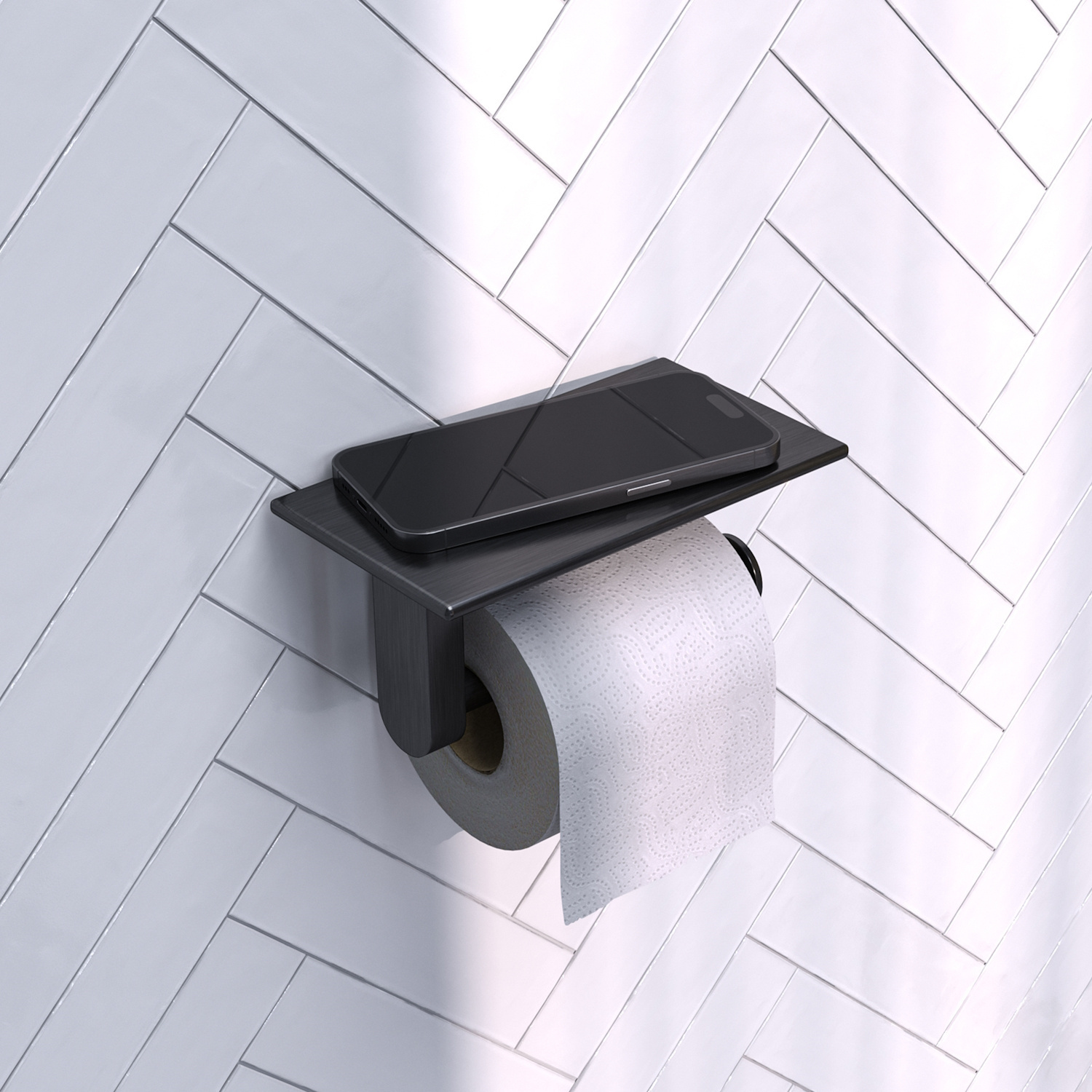 Deze toiletrolhouder met planchet van het merk Brauer is een erg praktische toevoeging aan uw badkamer of toiletruimte en komt uit de Gunmetal Edition serie. De stijlvolle uitstraling past perfect binnen elke interieurstijl van uw badkamer of toiletruimte. De rolhouder heeft een planchet aan de bovenkant van 18 cm breed 10 cm diep en 8 cm hoog. Deze is ideaal om bijvoorbeeld uw telefoon of een luchtverfrisser of geurstokjes op neer te leggen tijdens het toiletbezoek. Combineer het toiletrolhouder met planchet met ander accessoires uit de Gunnmetal Edition serie en maak van je toiletruimte een geheel.