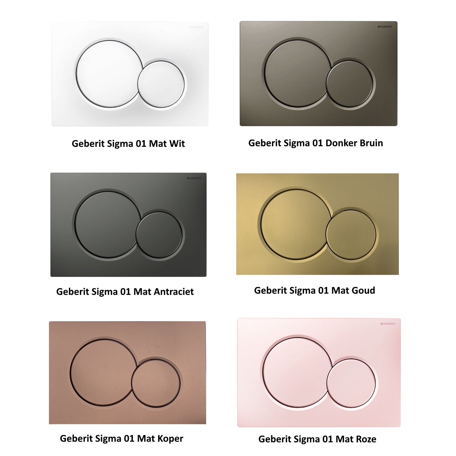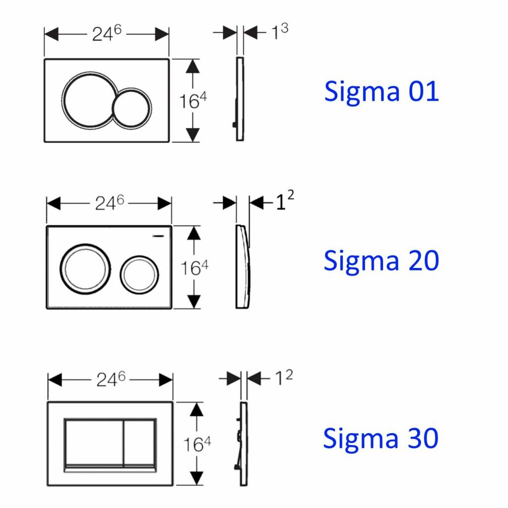 De Sigma drukplaten hebben verschillende series met allemaal hun eigen specialiteit. In de set zit een variatie van de Sigma 01, 20 en 30 drukplaten waar u uit kunt kiezen. De drukplaten zijn voorzien van 2 knoppen die speciaal ontwikkeld zijn voor een grote of kleine spoeling waarmee u veel water kunt besparen. De grote knop verbruikt tussen de 4,5 en 6 liter water per spoeling. De kleine knop tussen de 3 tot 4 liter. U kunt dit handmatig bijstellen zodat u optimaal water kunt besparen.