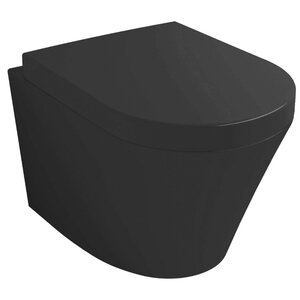 Rimless Wandcloset BWS Mark Mat Zwart PK Met Toiletzitting Softclose En Quick Release Mat Zwart