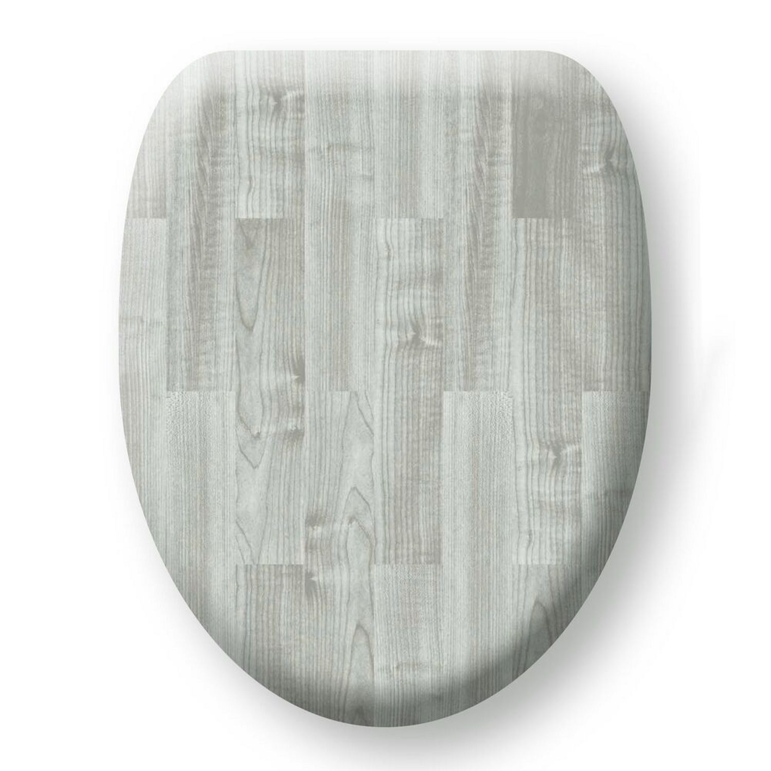 Deze mooie, dunne toiletbril onderscheidt zich met zijn vergrijsde houtprint. Dit geeft een stoere of robuuste uitstraling aan uw toiletruimte of badkamer. De zitting heeft een speciale rubbercoating. Daardoor voelt de toiletzitting nooit koud aan en zit u altijd comfortabel.