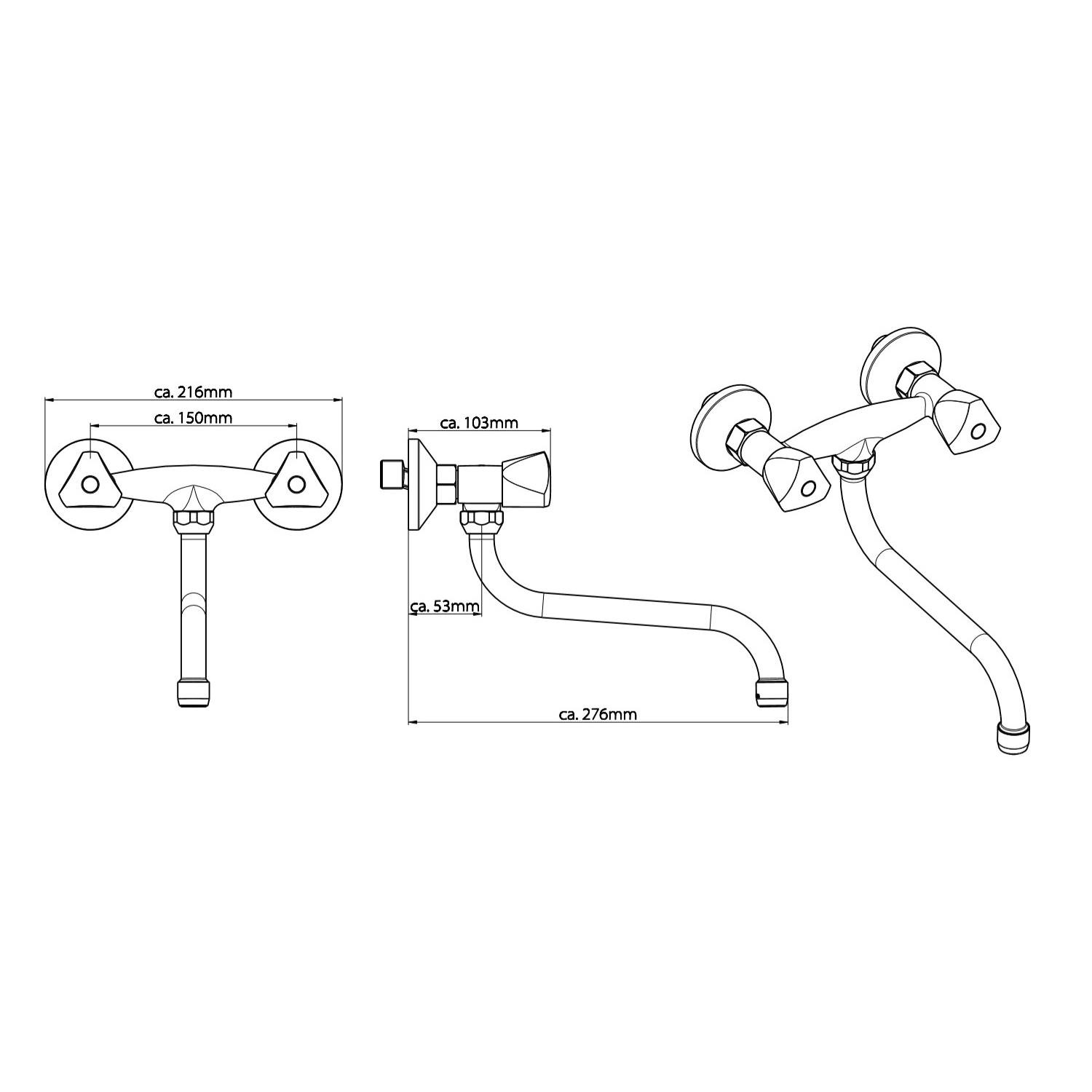 De Cesti keukenkraan van het merk Schutte is gemaakt van messing en heeft een chromen afwerking. Dit wandmodel maakt ruimte vrij rondom uw wasbak voor uw keukengerei of u kunt het vrijhouden om een clean look in de keuken te creëren. De kraan bevat twee grepen waarmee de temperatuur van het water geregeld kan worden. De keukenkraan beschikt ook over een draaibare uitloop. De draaibare uitloop maakt het mogelijk om een dubbele vaat met water te vullen. De mengkraan is 27.6 cm lang en is 21.6 cm breed.