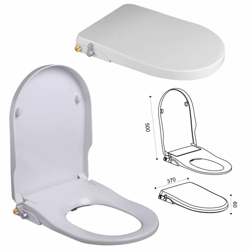 Douche WC Zitting Wiesbaden Flush Stroomloos met sproeier Wit
