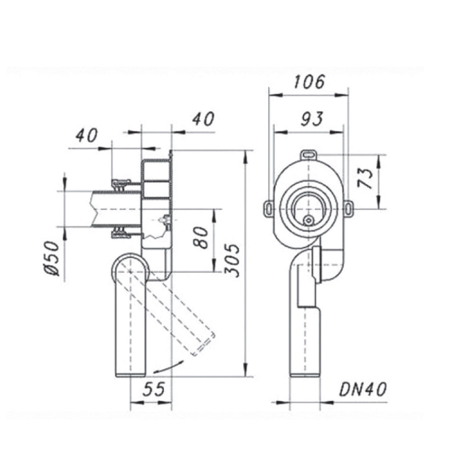 Het sifon heeft een lengte van 30.5 cm en een breedte van 10.6 cm.