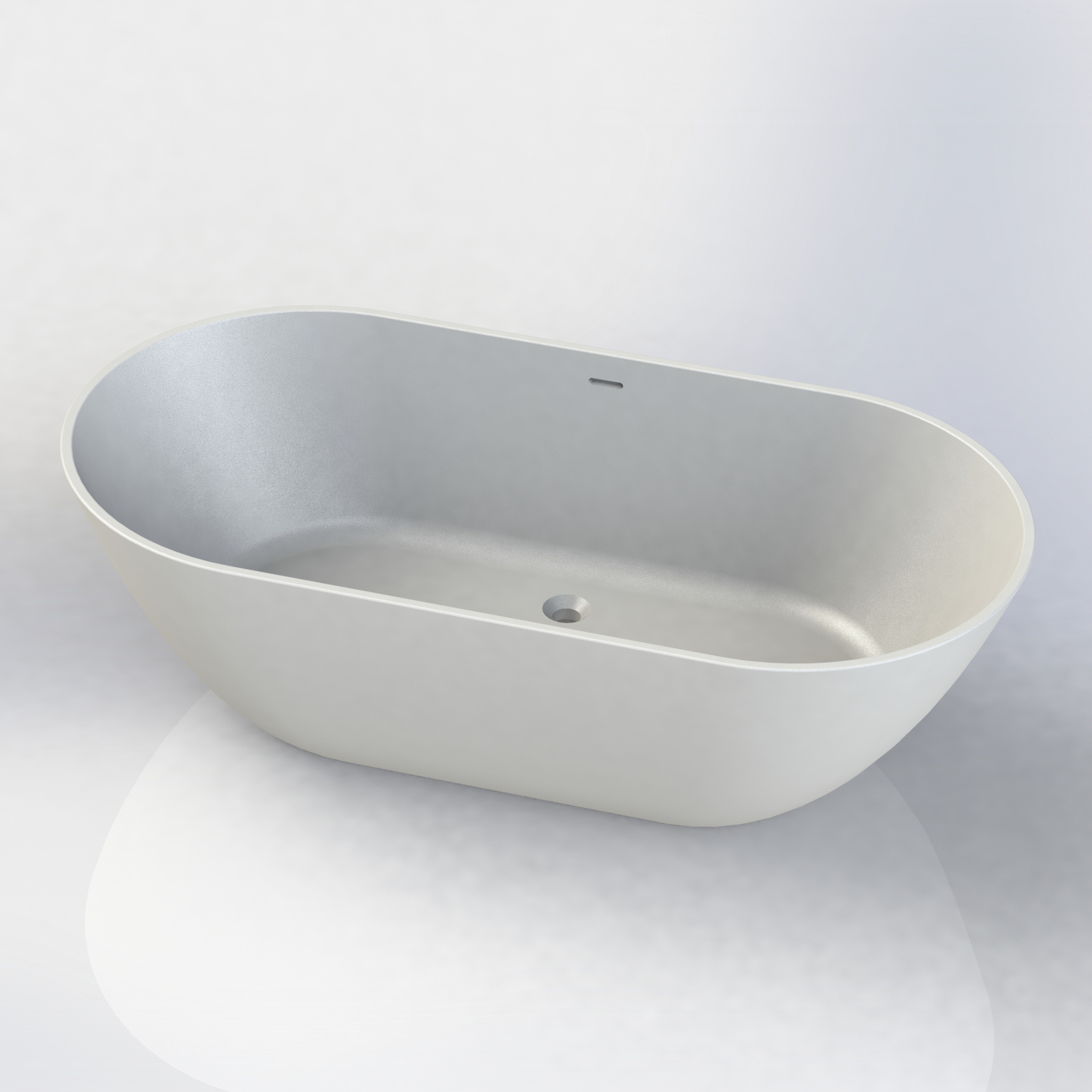 Het ligbad en gemaakt van gegoten marmer. Mineraal marmer is een gegoten substantie waardoor er strakke vormen mogelijk zijn. Het wordt afgeraden haarverf en andere sterke kleurstoffen in dit bad te gebruiken. Eventuele krassen die na verloop van tijd ontstaan zijn er makkelijk uit te poetsen met een polijstmiddel. Dankzij het onderhoudsvriendelijke karakter van gegoten marmer gaat het bad een groot aantal jaren mee.