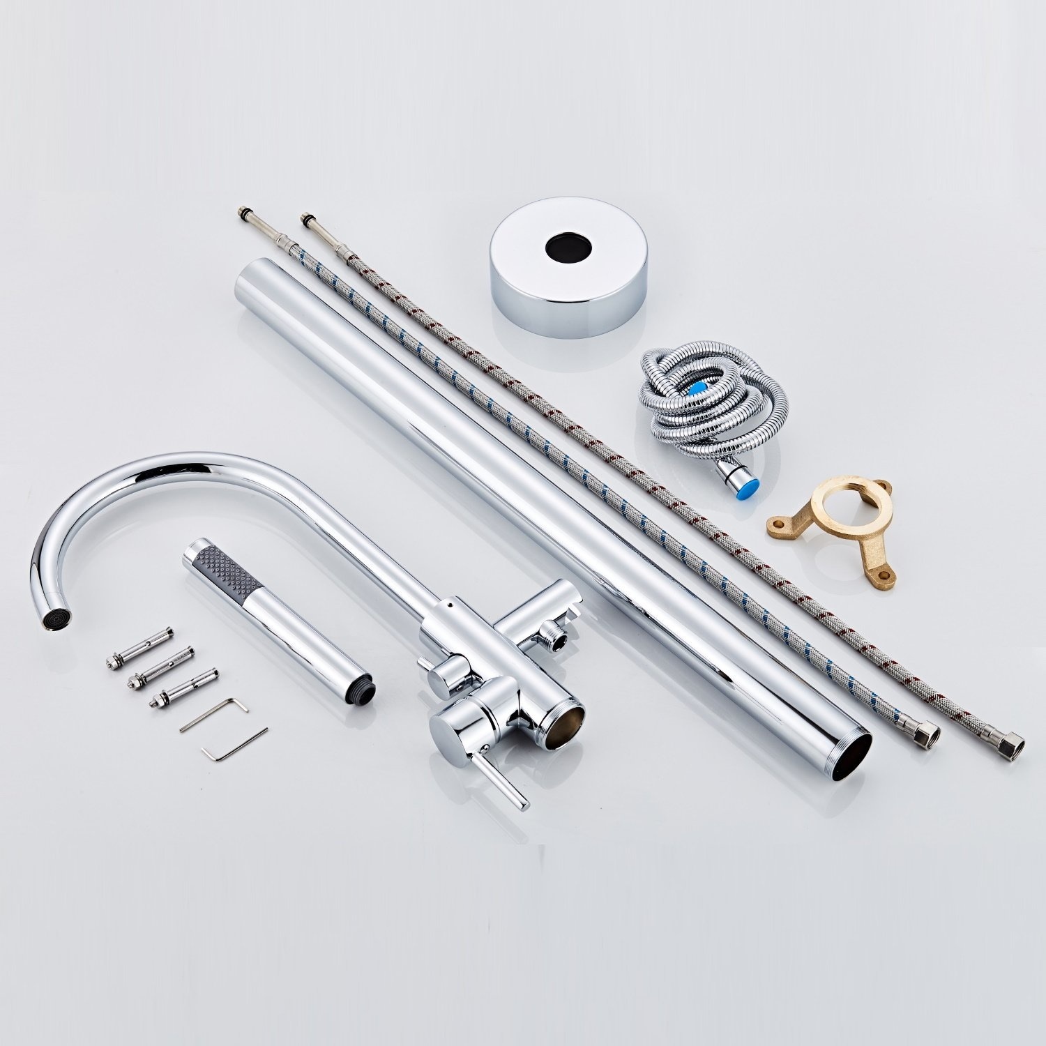 Met de 'Talpa' vrijstaande badkraan van het merk Aqua Splash haalt u een bijzondere kraan in huis. De kraan is gemaakt van messing en heeft een afwerking in de kleur chroom. De vrijstaande badkraan is uitgerust met een handdoucheset die bestaat uit een doucheslang en een staaf handdouche. De vrijstaande badkraan kan uitstekend gecombineerd worden met een (vrijstaand) ligbad.
