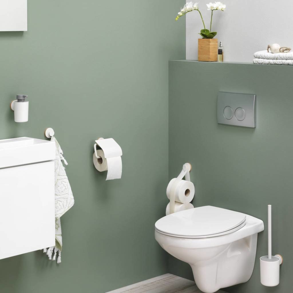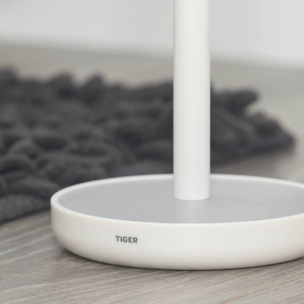 De vrijstaande reserverolhouder uit de Urban serie van Tiger is uitgevoerd in de kleur mat wit met grijs en wordt geleverd met drie eindkapjes. Deze decor elementen, in de kleur mat wit, licht eiken en grijs, maken het mogelijk een subtiel kleuraccent toe te voegen waardoor het artikel eenvoudig is aan te passen aan de gewenste stijl. Deze serie bevat tevens een wandhangend reserverolhouder naast een groot aantal aanvullende accessores voor de badkamer en de toiletruimte. Alle in dezelfde stijl. De artikelen uit de serie zijn ook in de kleur mat zwart verkrijgbaar.