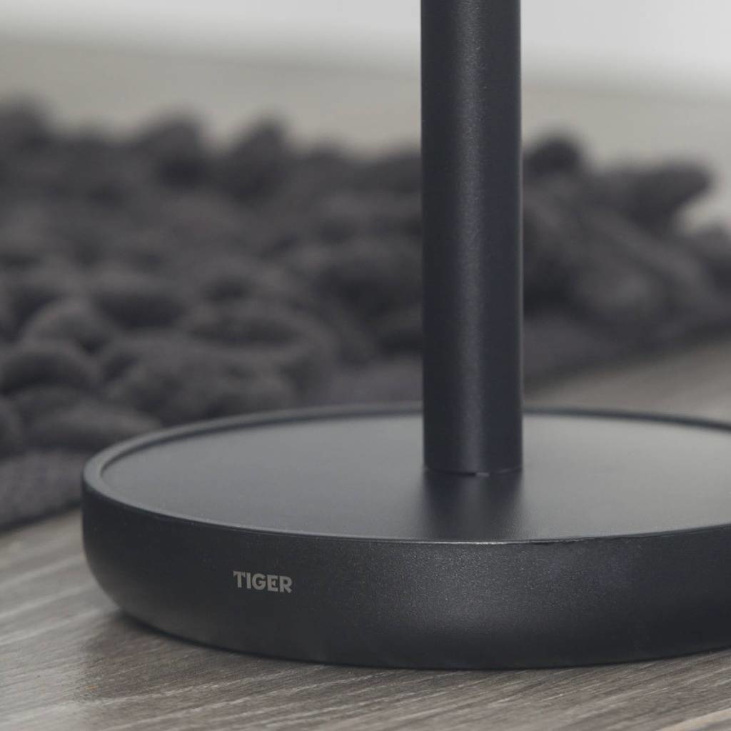 De vrijstaande reserverolhouder uit de Urban serie van Tiger is uitgevoerd in de kleur mat zwart en wordt geleverd met drie eindkapjes. Deze decor elementen, in de kleur zwart, koper en grijs, maken het mogelijk een subtiel kleuraccent toe te voegen waardoor het artikel eenvoudig is aan te passen aan de gewenste stijl. Deze serie bevat tevens een wandhangend reserverolhouder naast een groot aantal aanvullende accessores voor de badkamer en de toiletruimte. Alle in dezelfde stijl. De artikelen uit de serie zijn ook in de kleur mat wit verkrijgbaar.