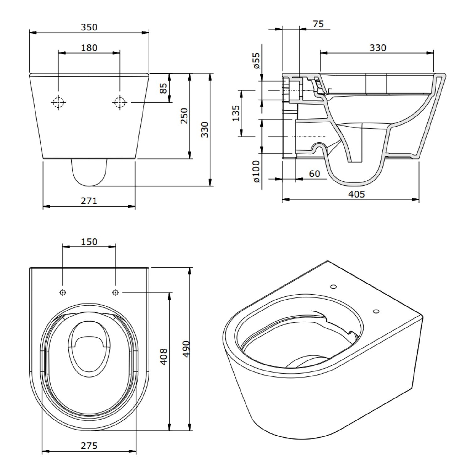 De toilet komt inclusief de benodigde montagematerialen.