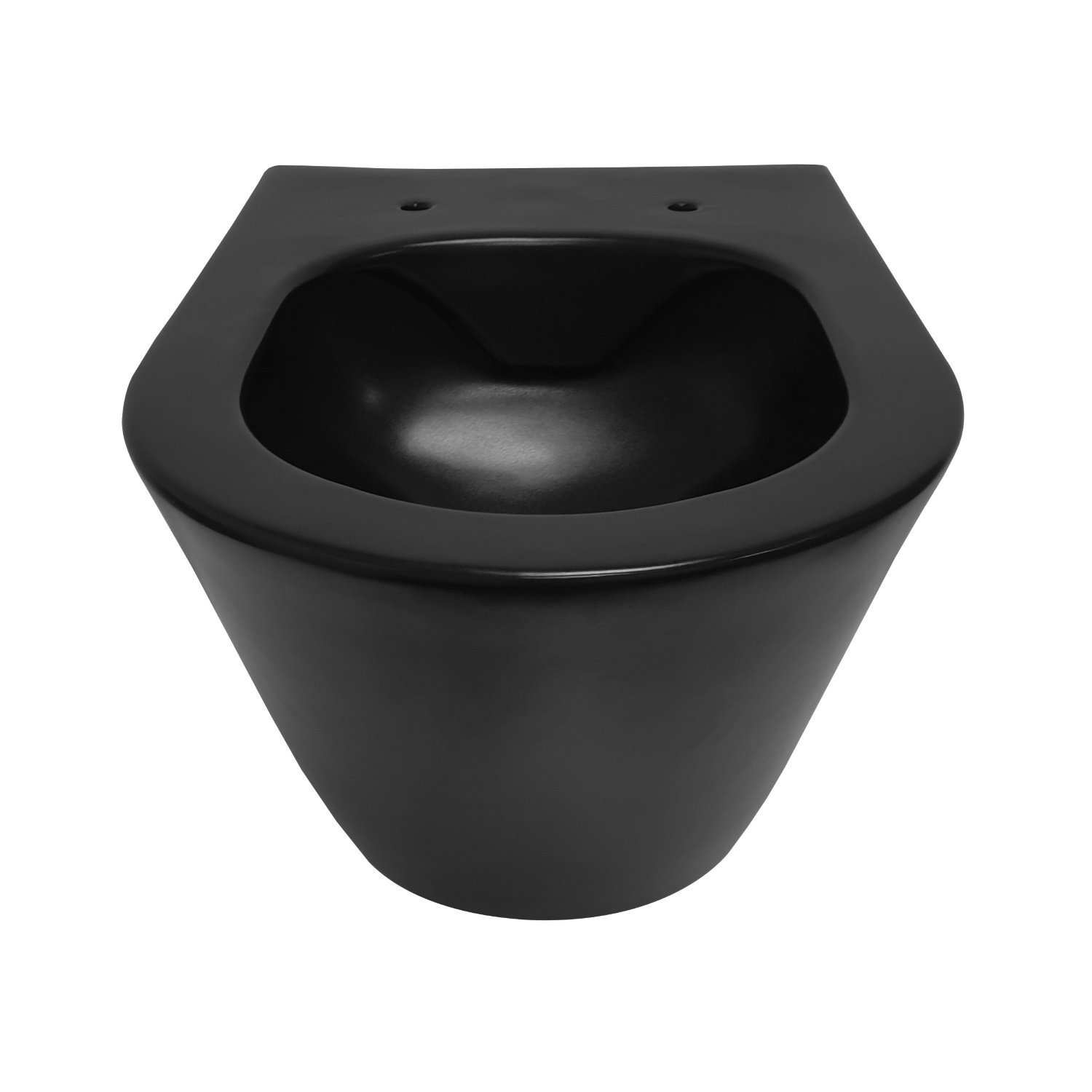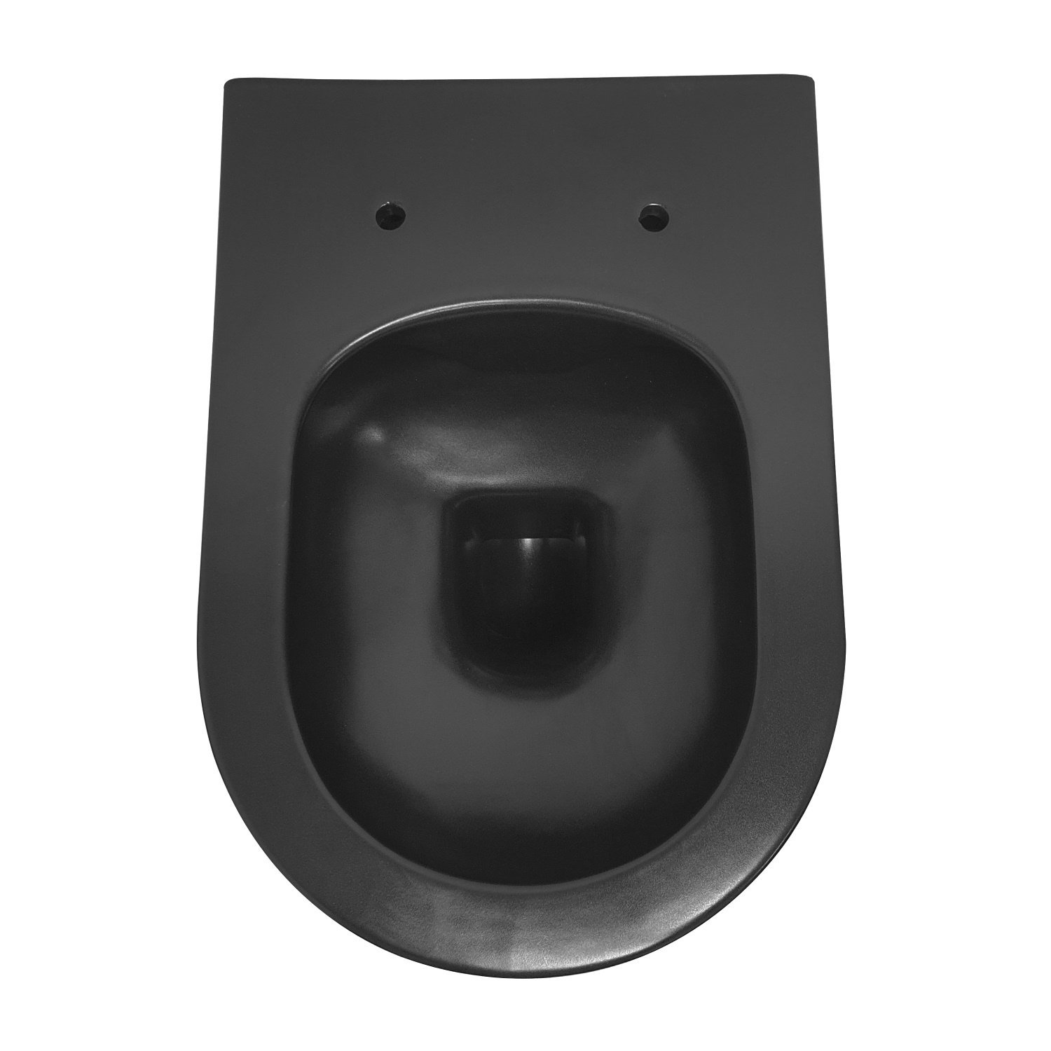 Bent u op zoek naar een bijzonder wandcloset? Kies dan voor de mat zwarte Wiesbaden Stereo toiletpot! De Stereo van 53 cm diep heeft geen spoelrand. Ook wel Rimless genoemd. Rimfree betekent eigenlijk dat de pot geen spoelrand heeft. Vaak hoopt er onder de spoelrand veel kalk en vuil op, maar een Rimfree toilet heeft dit niet. Er zit een mooi gevormde waterverdeler verwerkt aan de achterkant dat zorgt dat het spoelwater direct in de afvoer komt.