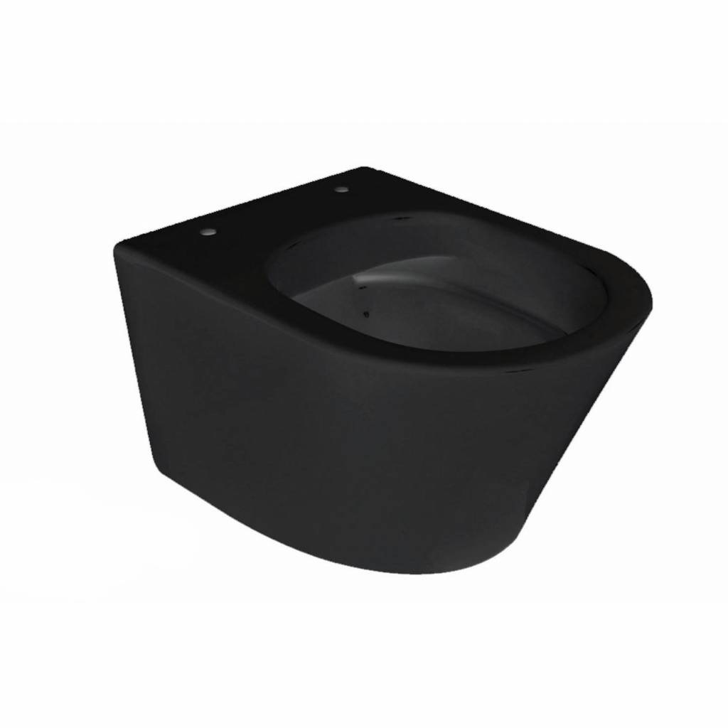 Bent u op zoek naar een bijzonder wandcloset? Kies dan voor de mat zwarte Wiesbaden Vesta toiletpot! De Vesta van 52 cm diep heeft geen spoelrand. Ook wel Rimless genoemd. Rimfree betekent eigenlijk dat de pot geen spoelrand heeft. Vaak hoopt er onder de spoelrand veel kalk en vuil op, maar bij een Rimfree toilet heeft u dat niet. Er zit een mooi gevormde waterverdeler verwerkt aan de achterkant dat zorgt dat het spoelwater direct in de afvoer komt.