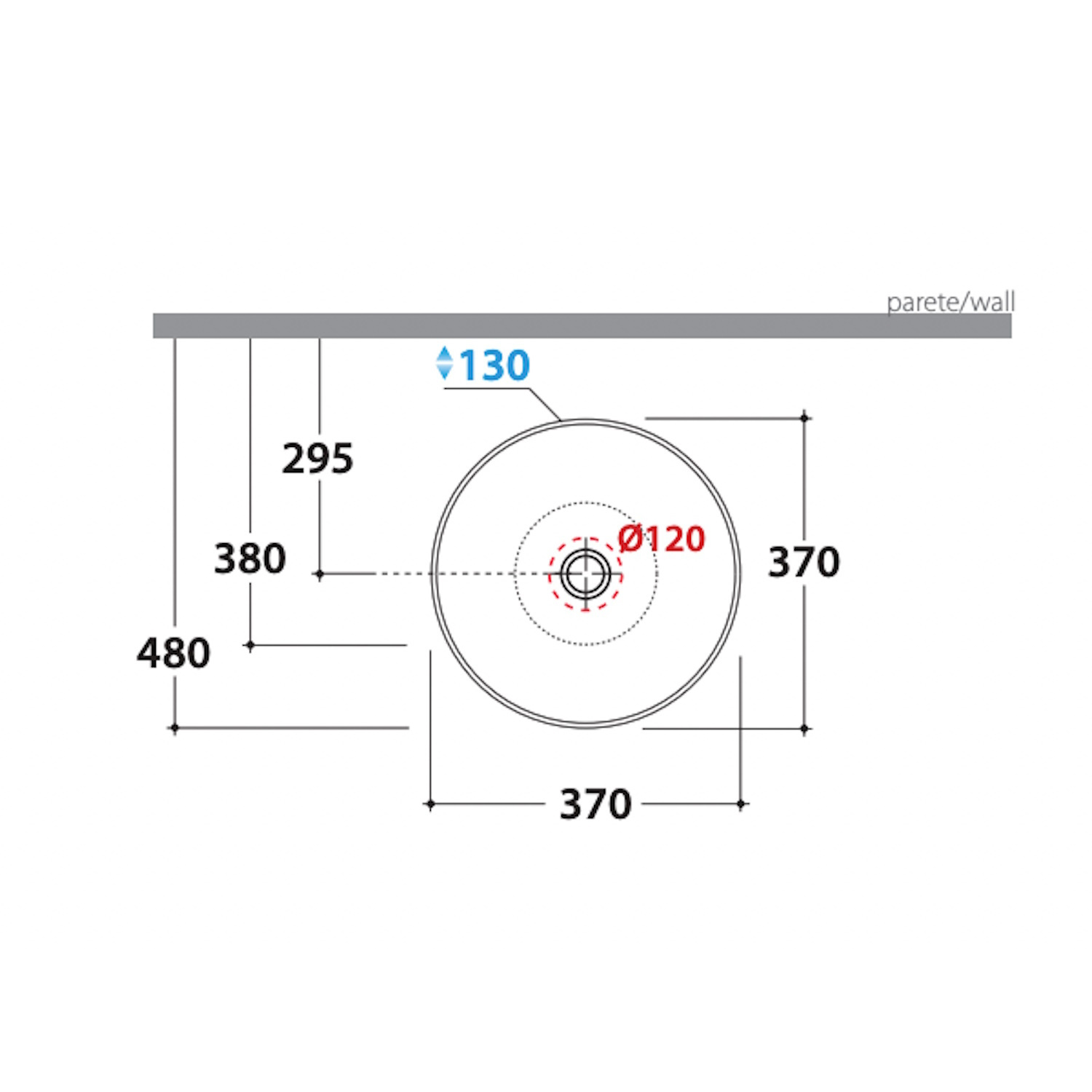De kom is 16 cm hoog met een diameter van 37 cm. Zonder overloop en waste. De kom is van keramiek. Dit is gemakkelijk schoon te maken en te houden.