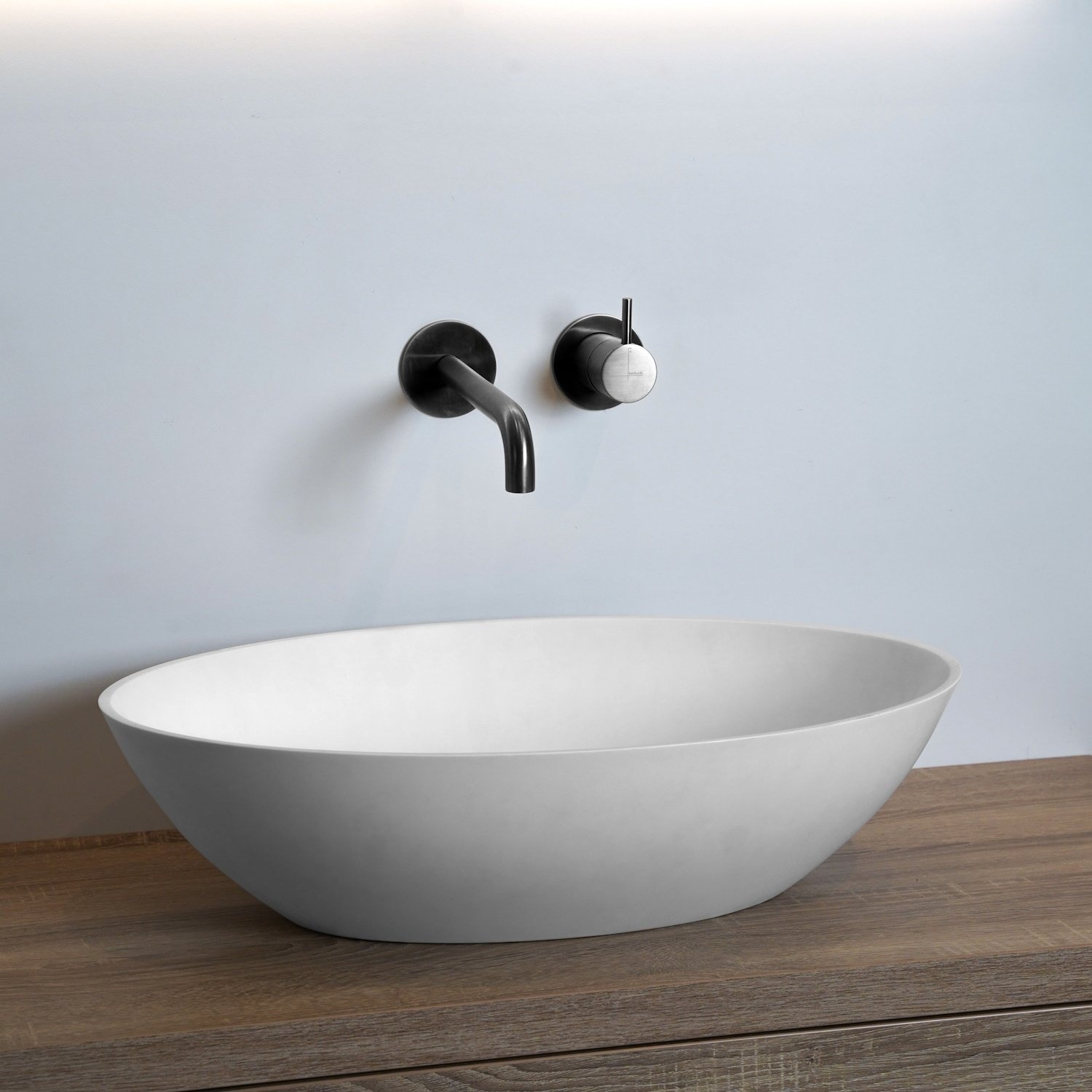 Deze waskom is van het merk Loutro en komt uit de serie Adela is 13.5 cm hoog, 57 cm breed en 40 cm diep. De waskom is ovaal. De kleur van de waskom is mat wit. Er zit geen overloop in. Door zijn witte kleur past hij in elke badkamer.