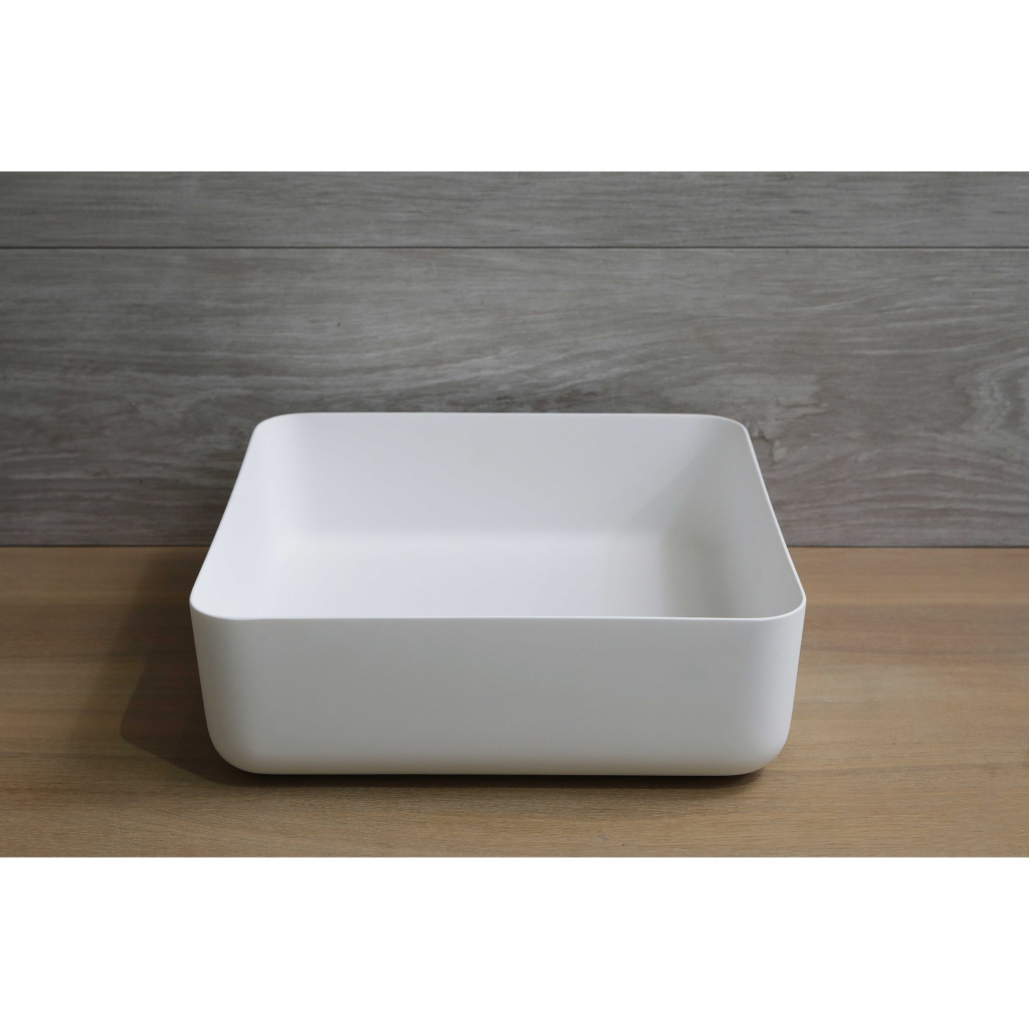 Deze bijzondere waskom van het merk Luca Sanitair is een vierkante opbouw waskom die is gemaakt van solid surface. De fraaie kom heeft een afwerking in de kleur mat wit en beschikt over een dunne rand. De breedte en de diepte bedragen 40 cm, terwijl de waskom een hoogte van 13,5 cm heeft. Naast een variant in de kleur mat wit is deze vierkante waskom ook leverbaar in een glanzend witte variant.