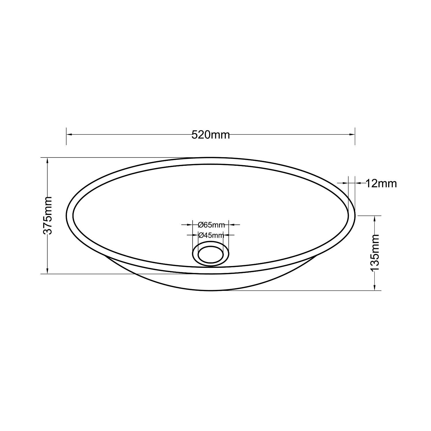 Met een hoogte van 13.5 cm kan je gebruik maken van hoge wastafelkraan of een inbouw wastafelkraan, een geschikt model vindt je onder de toebehoren.De waskom heeft een afmeting van 52x37.5x13.5 cm met randdikte van 1.2 cm. Er is geen overloop ingebouwd in deze waskom.