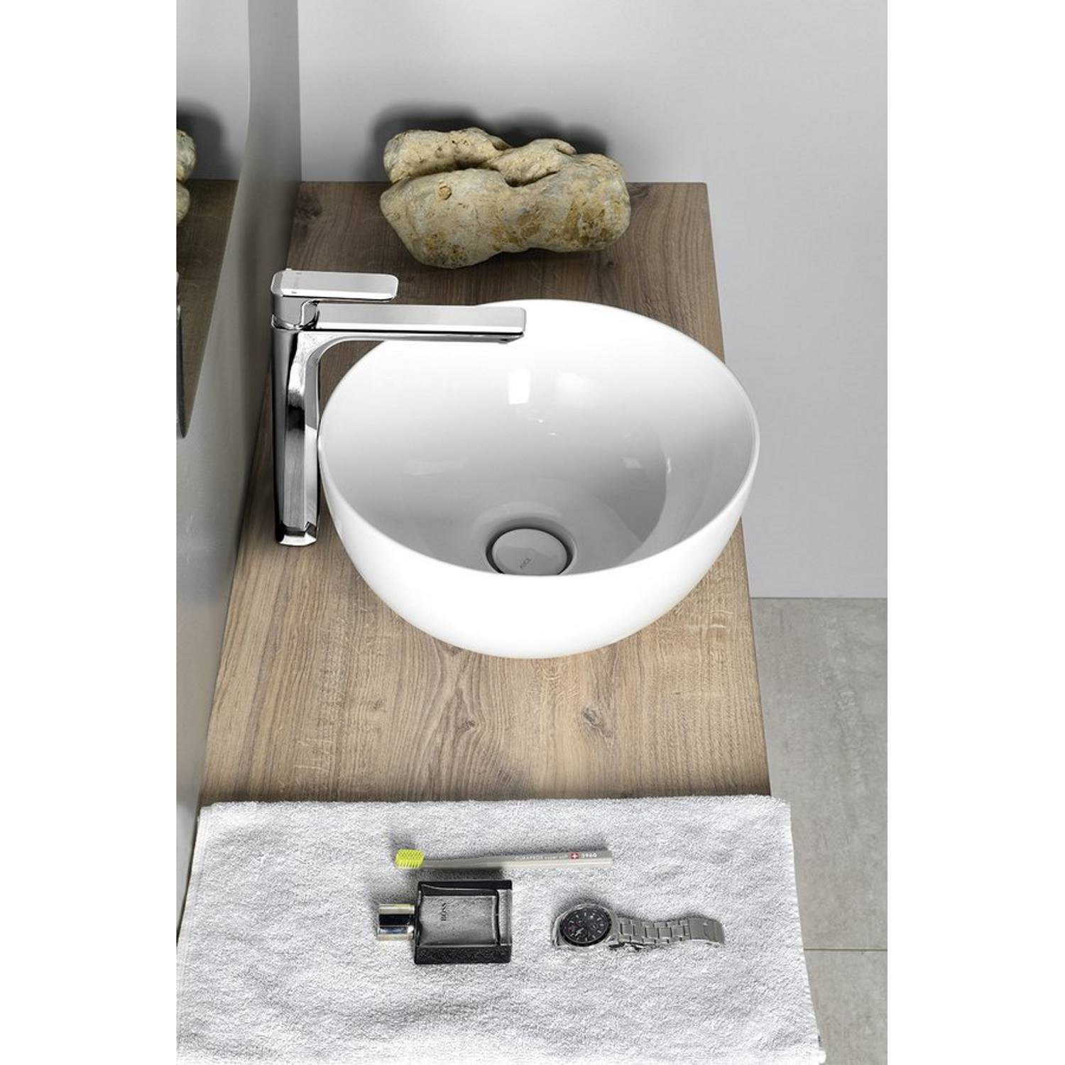 Met deze unieke witte opbouw waskom van Sapho geeft u uw badkamer een hippe uitstraling. De keramieken waskom heeft een rond design en heeft de afmetingen 40x40x20 cm. (BxDxH)