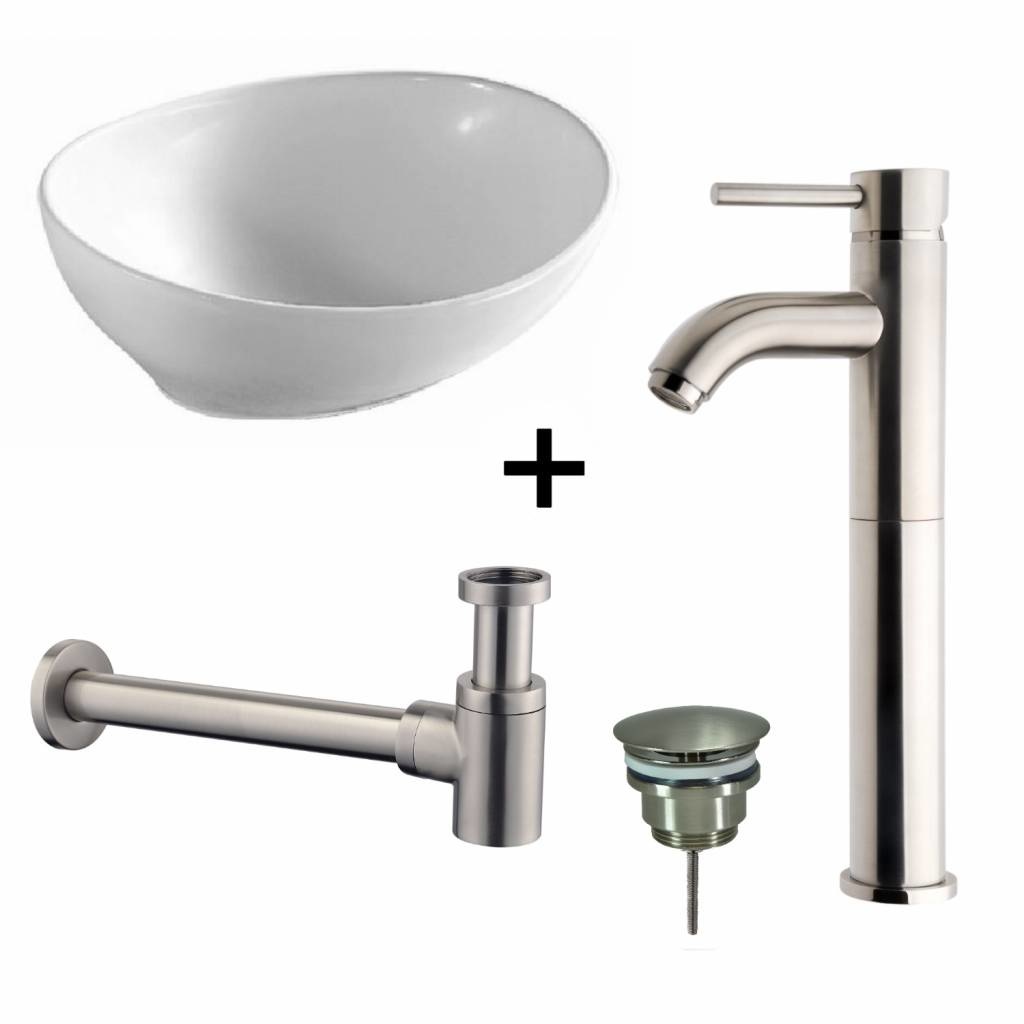 De waskom wordt geleverd als ONE-PACK wat u een mooi prijsvoordeel oplevert. Wat deze set zo uniek maakt is de combinatie van de waskom met een extra verhoogde wastafelkraan, sifon en een afsluitbare afvoerplug.